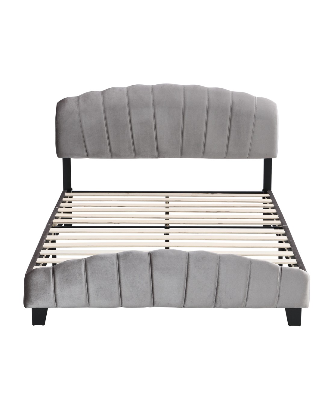 IHOMDEC BEF04 Double Size Velvet Shell Headboard Bed Frame Base