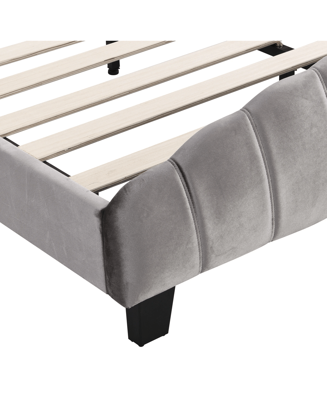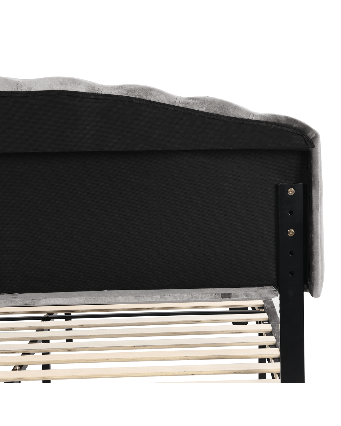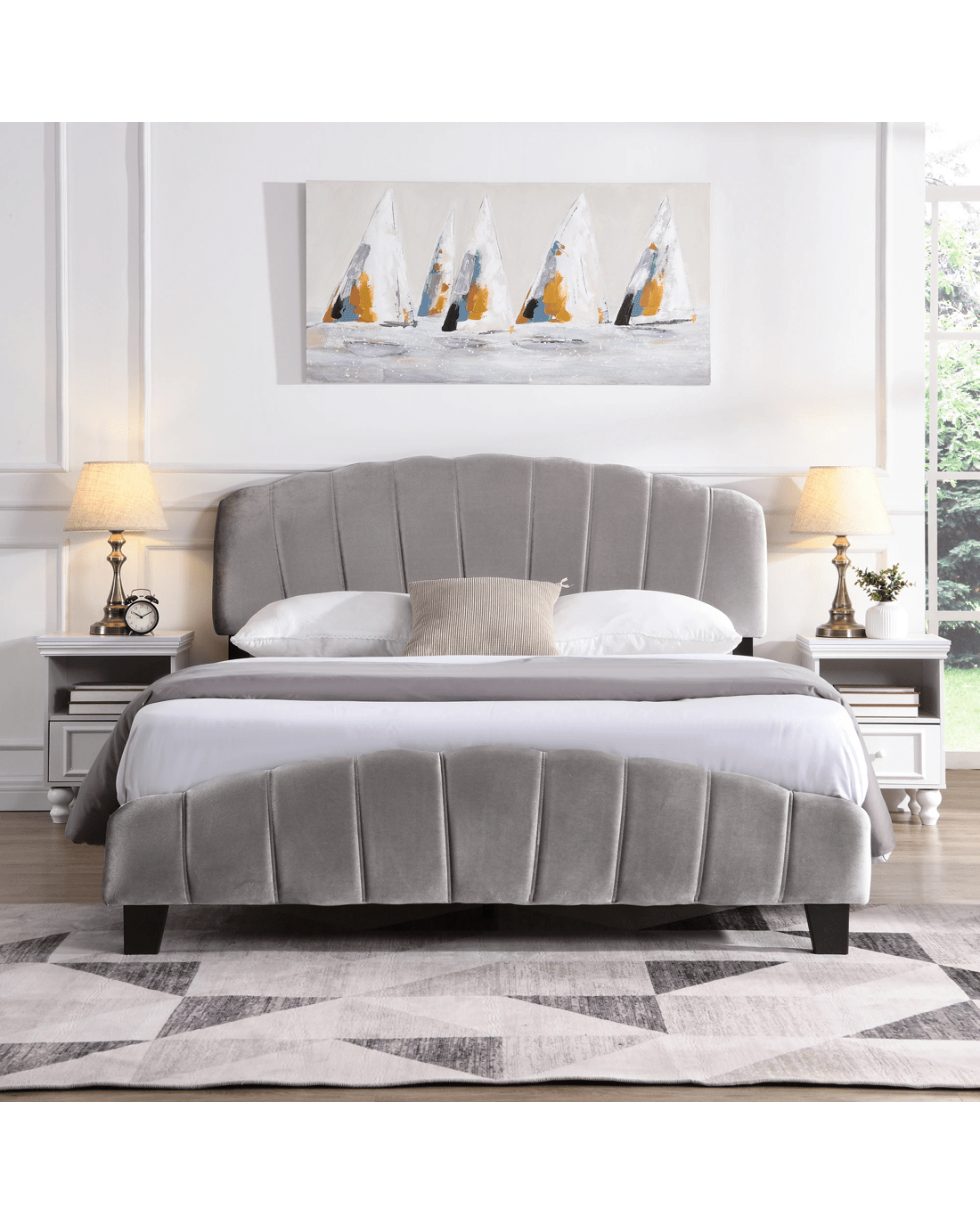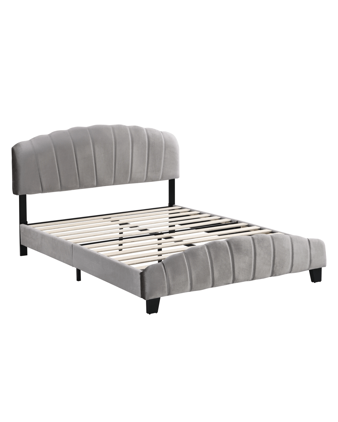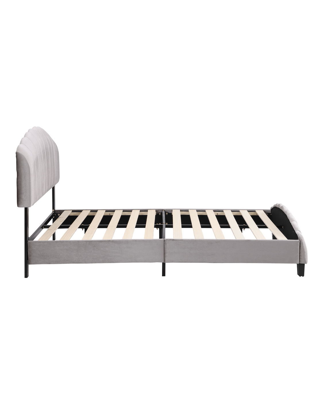 BEF04 Queen Size Shell-Style Bed Frame Base Mattress Platform Re-shape your bedroom with a new, striking centrepiece. This elegant bed is upholstered with 100% polyester velvet in a neutral hue, and its shell-shape headboard generously padded for added comfort. The effect is an inviting place that you'll love falling into each night with a sweet sleep Features Material: 100% polyester velvet upholstery+ high-density foam padding + Plywood + painted-finish steel frame, + polypropylene plastic legs Slats: Plywood Headboard can adjust three different height, 5cm for each level Upholstered with premium Velvet Plush Shell-style bedhead Padded with high-density foam Sturdy steel frame Strong centre support strut Heavy-duty metal connectors Reinforced construction with metal bars 2 black plastic feet Mattress not included Specifications: Queen Size: Overall dimensions: 108cmH x 163cmW x 212cmD Fits standard Queen-sized mattress: 150cmW x 203cmD Bed-End Board: 8cmH x 156cmW x 32cmD Bed-Head Board: 11cmH x 163cmW x 54.5cmD Height between floor and footboard: 11cm Weight capacity: 240kg Package Content 1 x Bed Frame 1 x Assembly Manual 1 x hardware pack