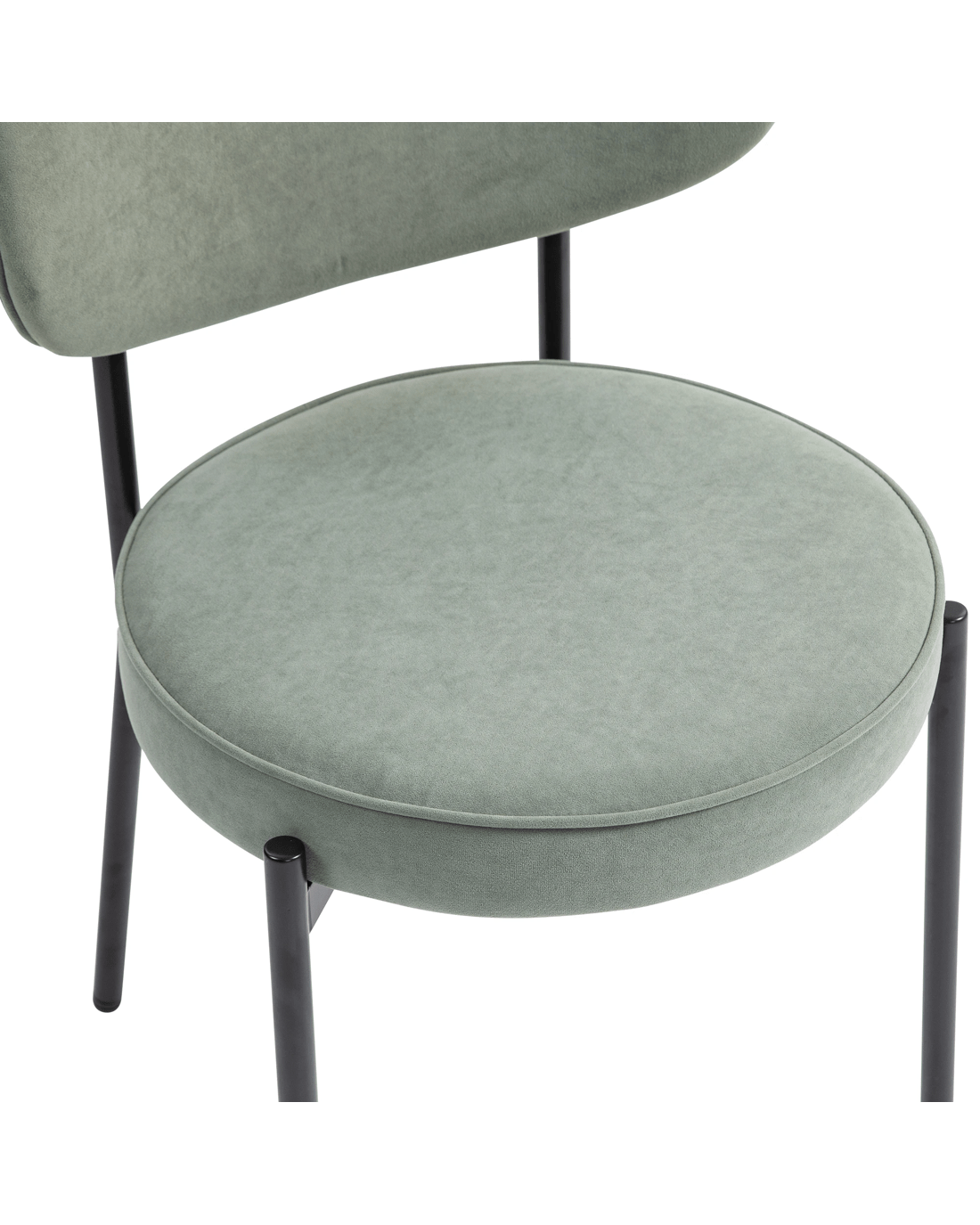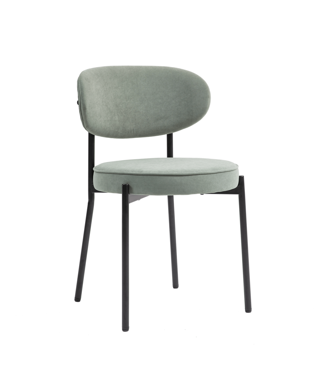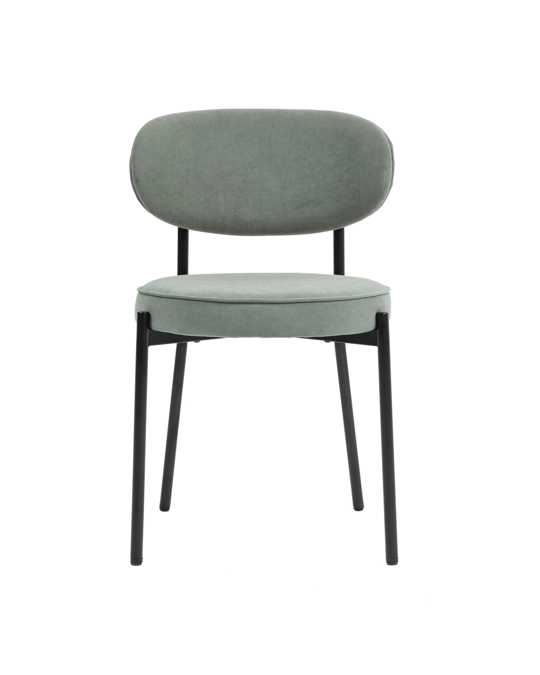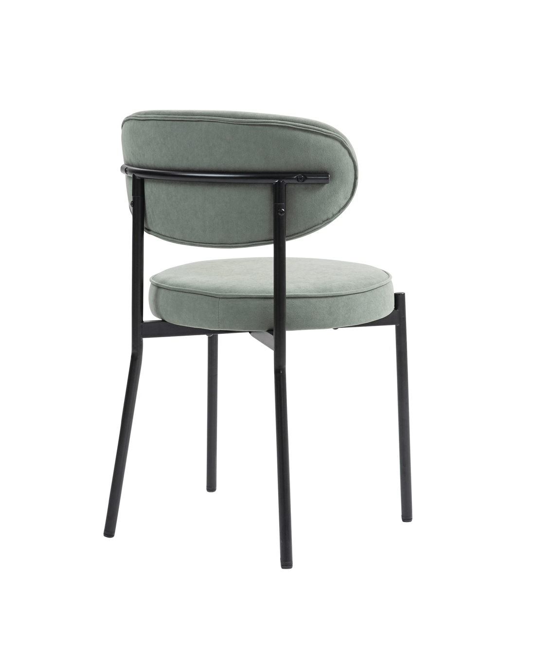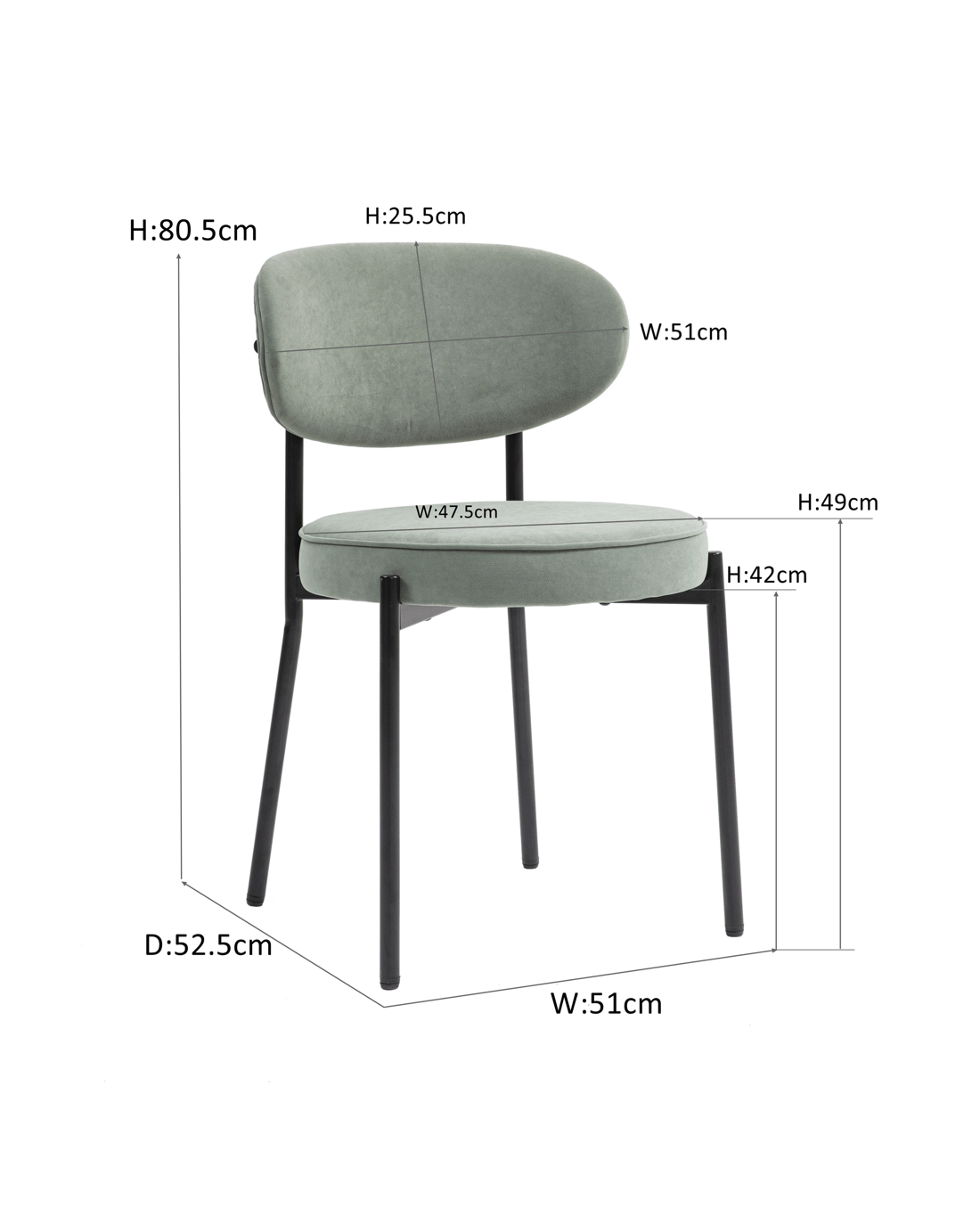 Mid-Century Round Upholstered Dining Chair with Metal Frame and Legs Set of 2 Descriptions Modern Design: Mid-century modern and contemporary but can blend into any design providing an inviting centerpiece for your guests. Great for kitchen, dining, home office spaces, commercial settings or any living space in your home Sturdy Construction: Sturdy black powder coating metal frame and upholstered with quality fabric. Plush upholstered seat and back are accented by a sturdy black steel shell. Solid construction with metal frame for durability and longevity Curved Comfort and Beauty: Medium curved cushioned open back to help keep your back supported and aligned. Thick semi firm cushion for all day comfort, white soft upholstered back padded with foam design for cool breathable seating 4 metal leg mats add extra stability and protect your floor from scratches. Easy to Assemble: This product ships 2pcs in one box which comes with all necessary parts, ready to be assembled hassle-free with detailed instructions. Features Material: 100% polyester Velvet+High-density Foam cushion & Backrest+Black Powder-coated steel frame & legs+Plywood Included: 2 Chairs/Set Upholstery Curved backrest & Round upholstery Seat Premium velvet upholstered fabric with high-density foam cushion Adjustable mats add extra stability NOTE: Color and saturation may vary due to lighting and monitor/phone screen settings Specifications Overall Dimension: 80.5cmH x 51cmW x 52.5cmD Cushion Dimension: 7cmH x 47.5cmW x 47.5cmD Back support dimension:25.5cmH x 51cmW x 5cmD Seat Height:49cm Seat bottom to floor:42cm Maximum weight capacity: 130 KG Package 2 x chairs 1 x hardware pack 1 x assembly manual