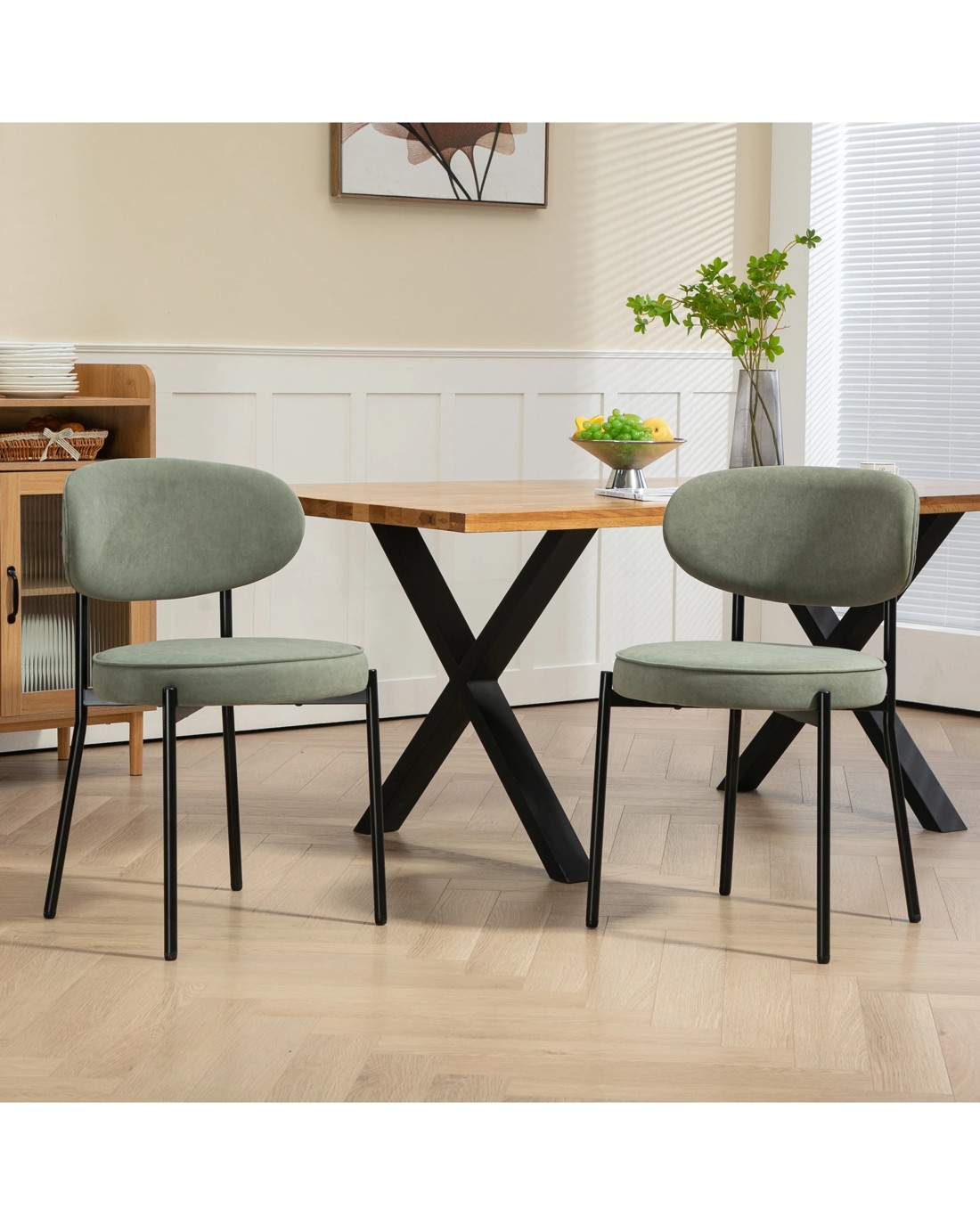 IHOMDEC Round Dining Chair Metal Frame and Legs Set of 2 - Green - Green