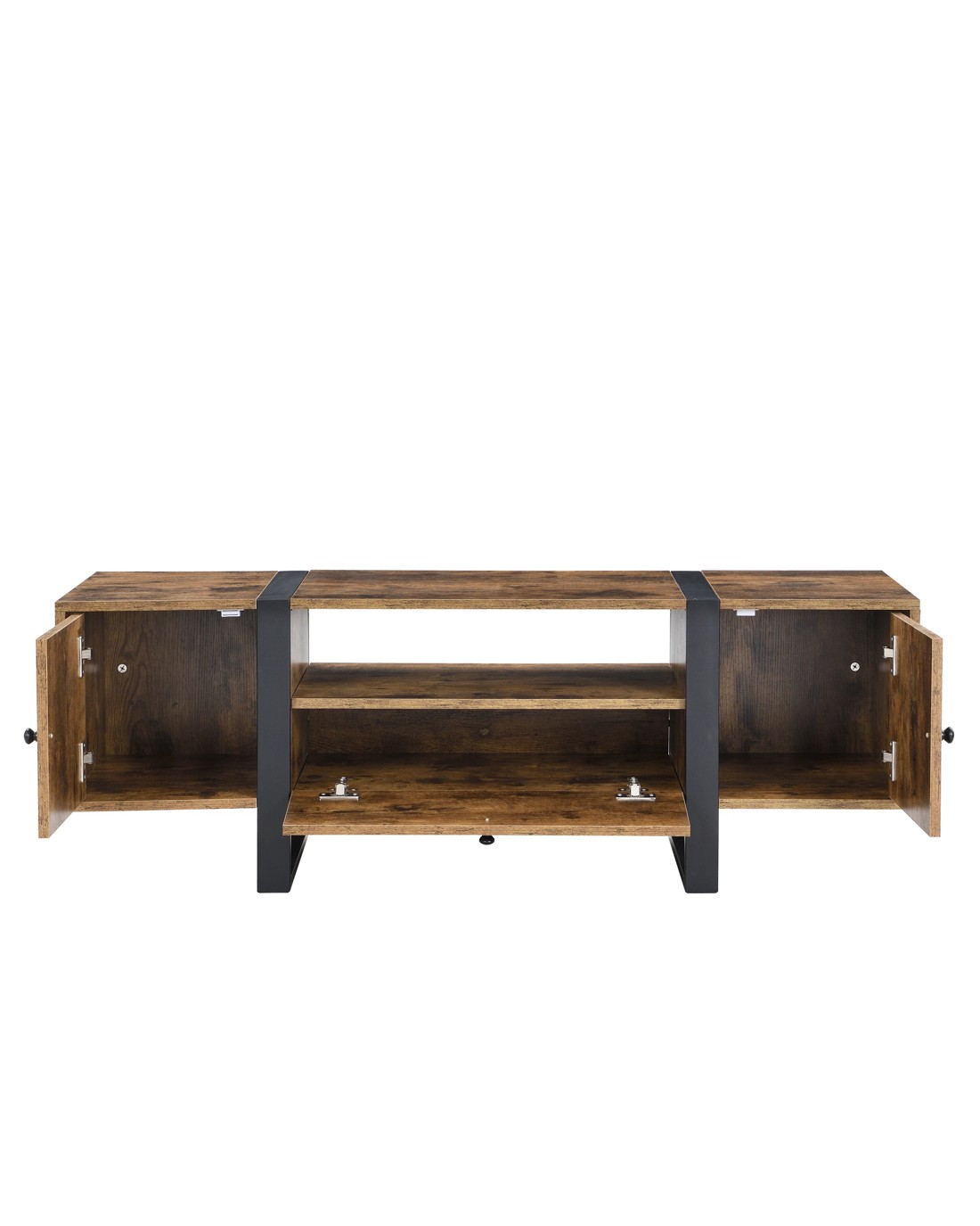 IHOMDEC TV Cabinet MDF Steel Rustic Dark Brown 3 Cabinets and Open Shelf