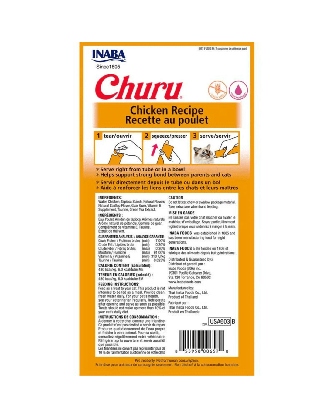Sold by Pet StationInaba Churu Creamy Cat Treat Chicken Recipe 6 x 56g