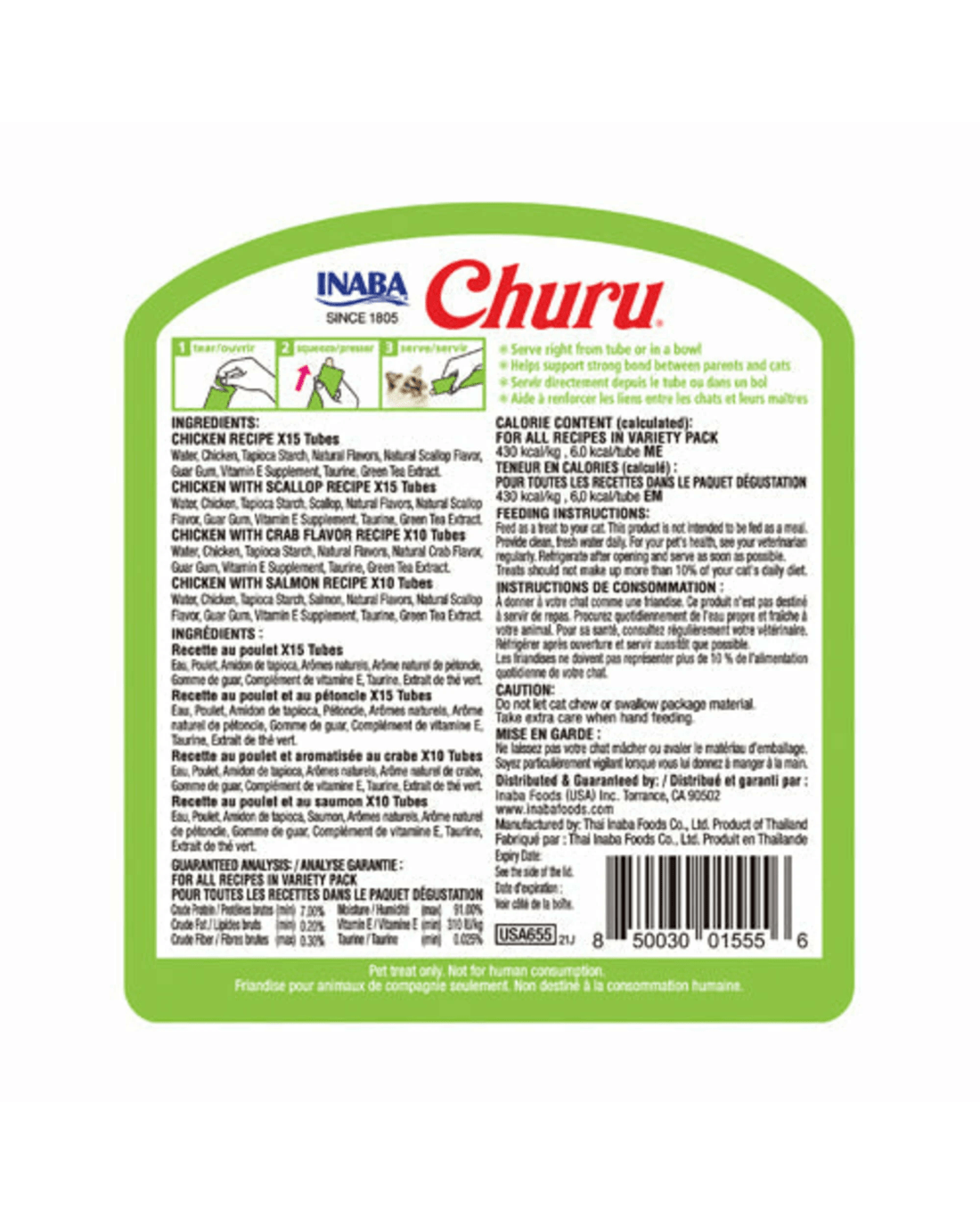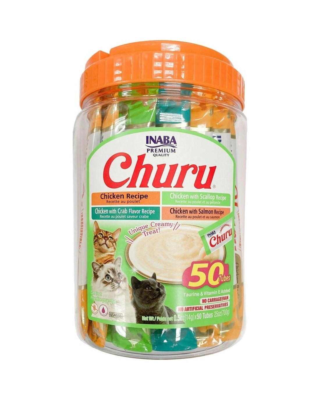 Sold by Pet StationInaba Churu Puree Pet Cat Treats Chicken & Seafood Variety Tub 50 Pack