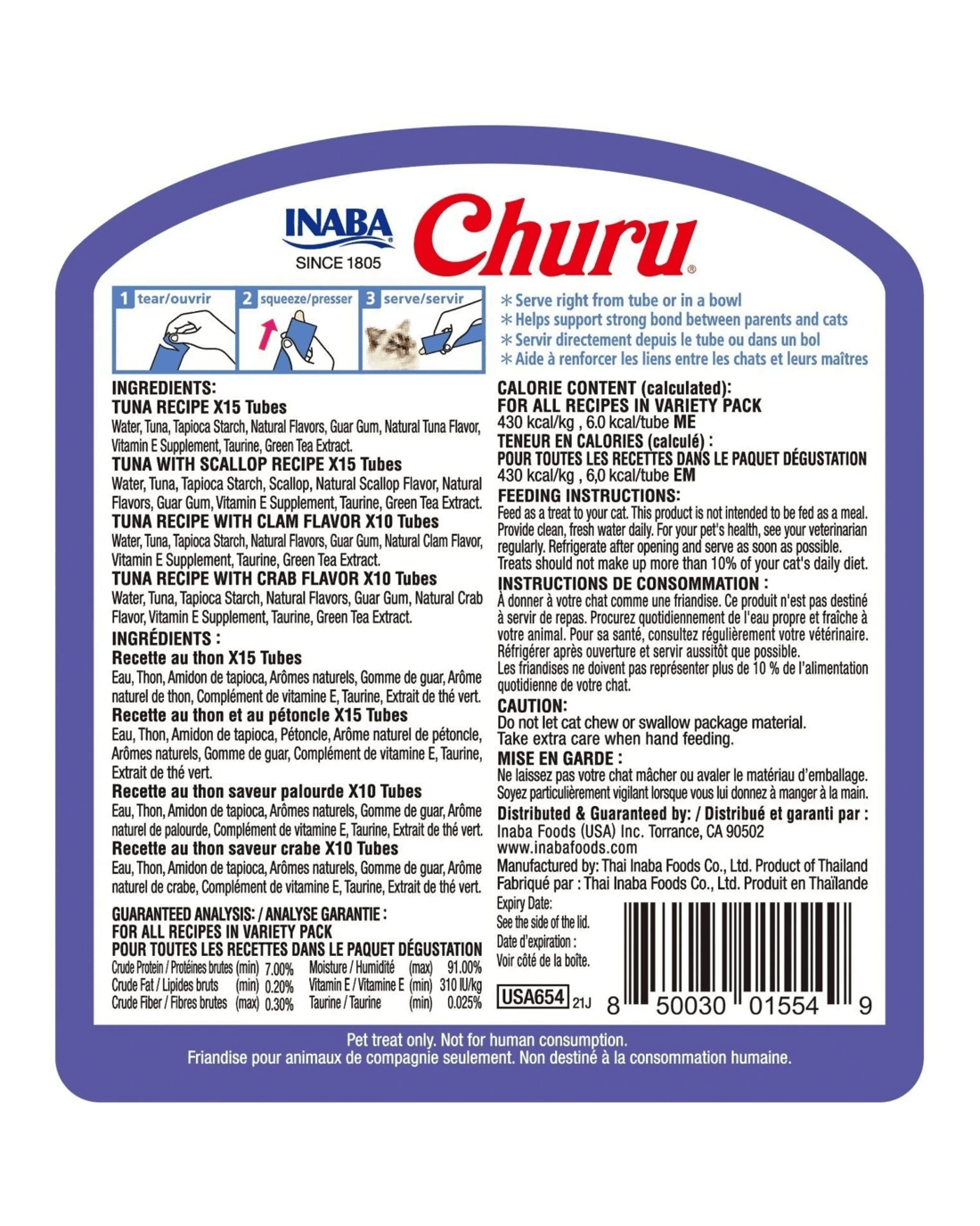 Sold by Pet StationInaba Churu Puree Cat Treats Tuna / Seafood Variety Tub 50 Pack