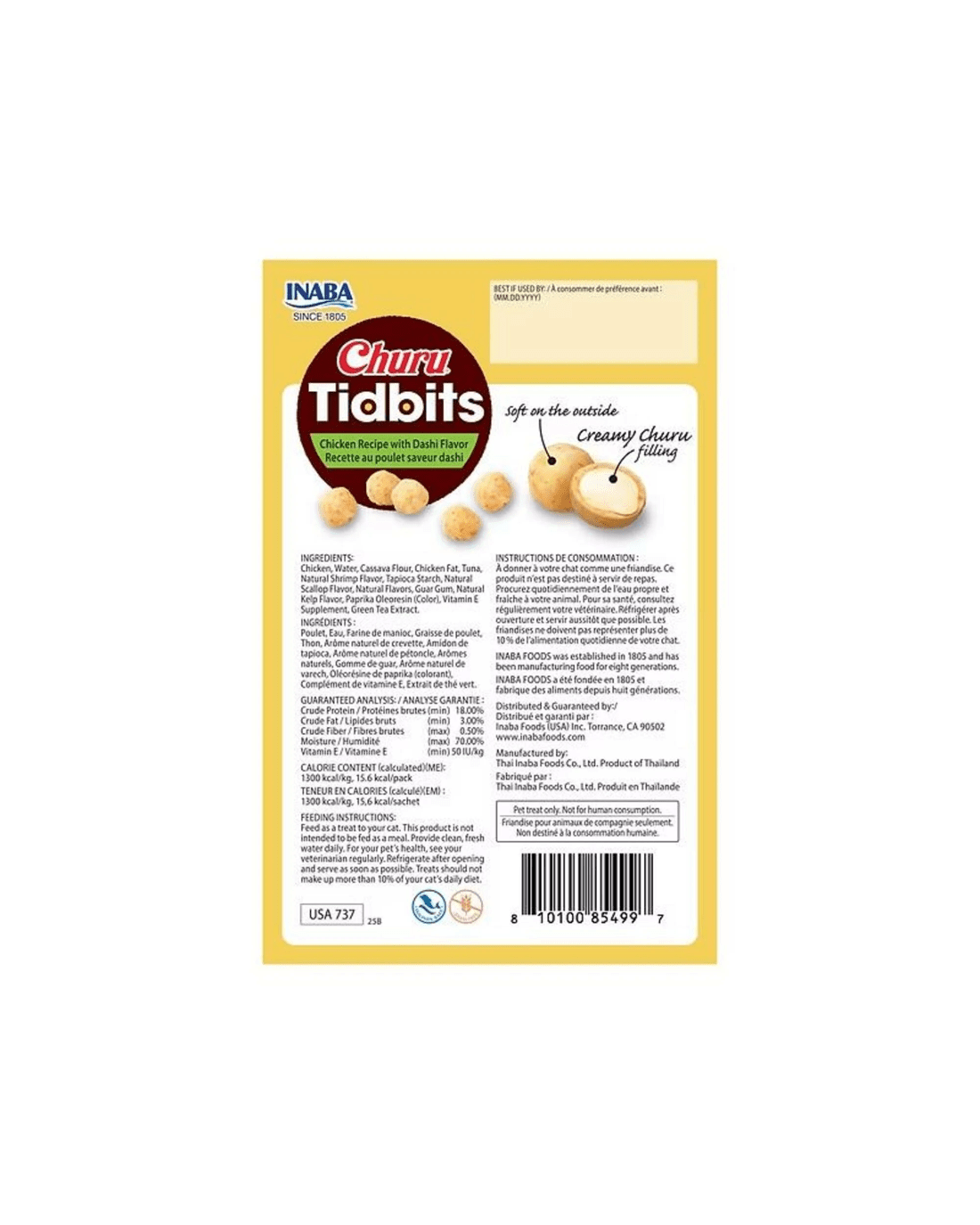 Inaba Churu Tidbits Pet Cat Treats Chicken with Dashi Flavor 8 Pack 96g