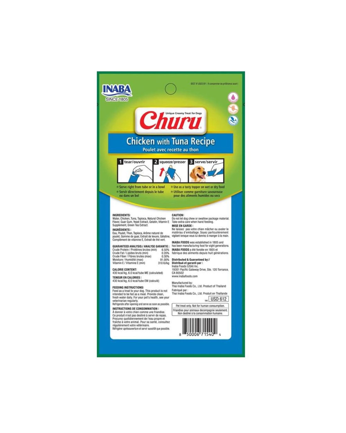 Inaba Churu Natural Dog Treat Chicken w/ Tuna 6 x 56g