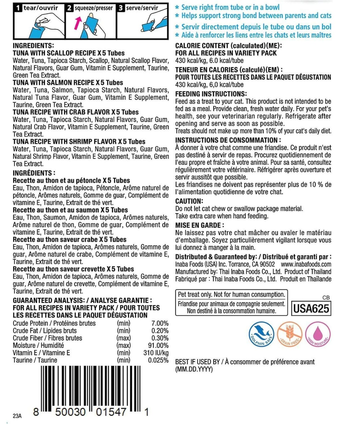 Inaba Churu Puree Lickable Cat Treats Tuna Seafood Variety Box 20 x 14g