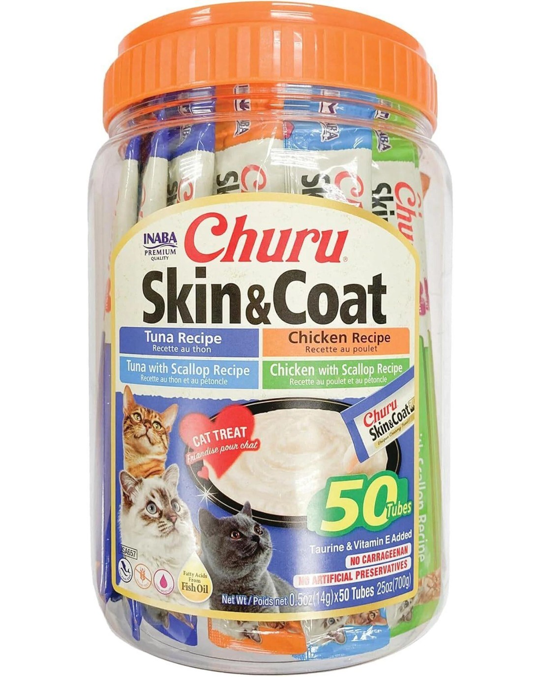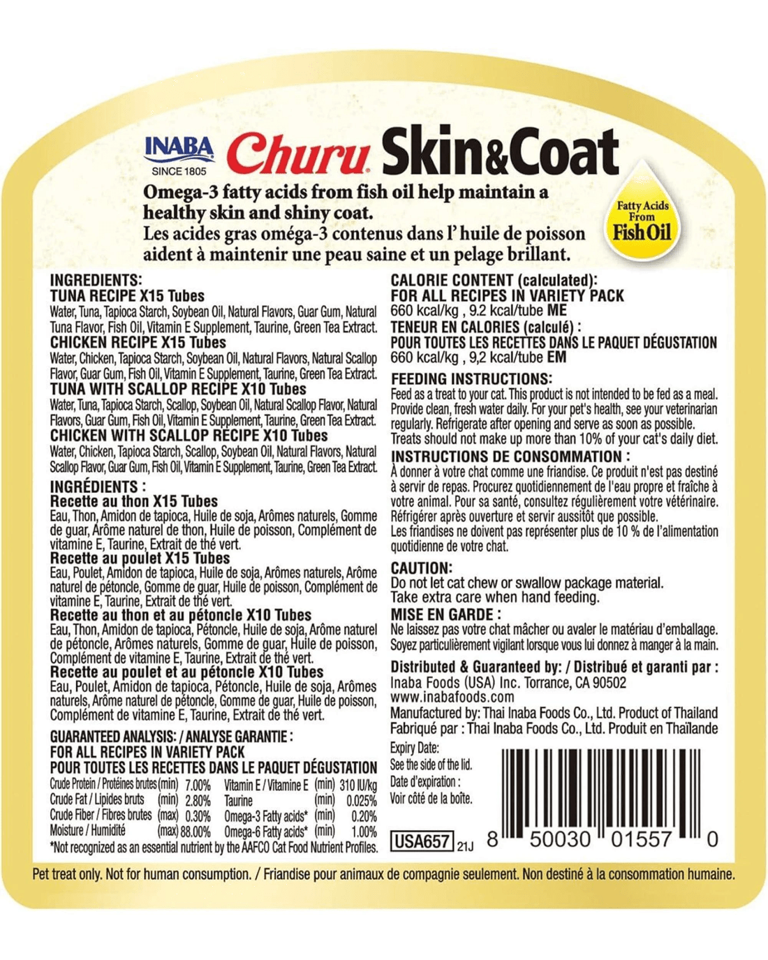 Inaba Churu Puree Skin & Coat Lickable Cat Treat Tuna & Chicken 50 x 0.5oz