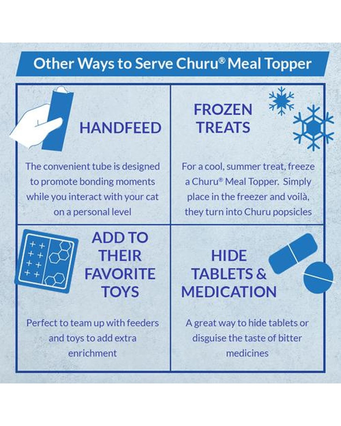 This 4 Tubes of INABA Churu Meal Topper Chicken with Cheese Recipe for dogs. These tasty dog food meal toppers are made with wholesome ingredients. These add flavour to your pets meal and help encourage fussy animals to eat.