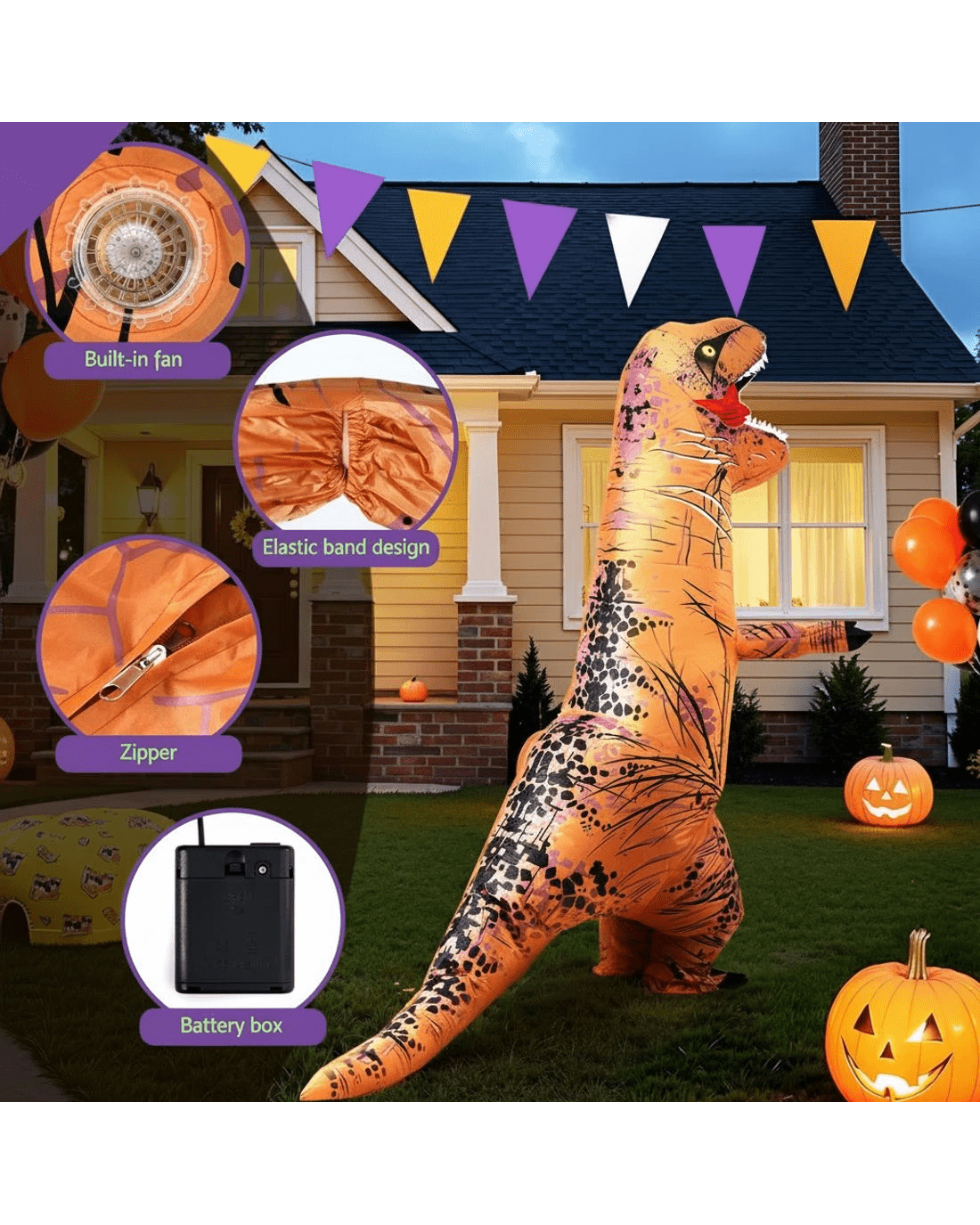 Inflatable Dinosaur Costume T-Rex Adult Suit Blow Up Party Fancy Dress Halloween - Brown