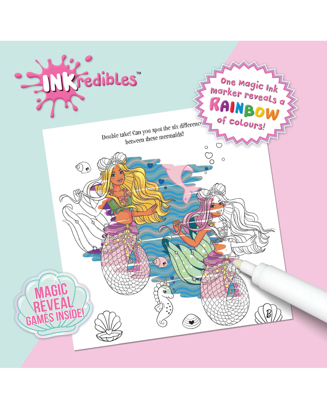• One Magic Ink marker reveals a rainbow of colours!