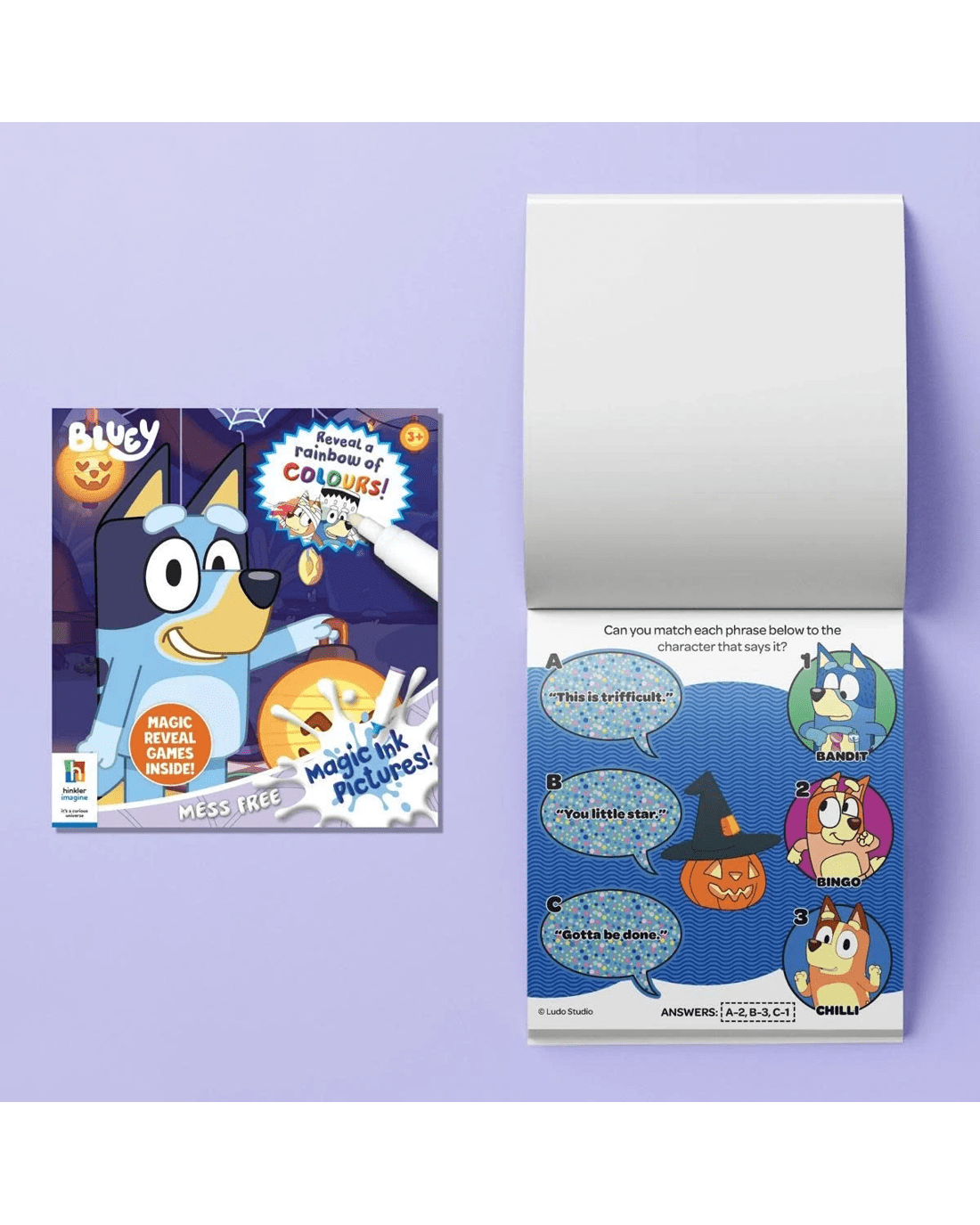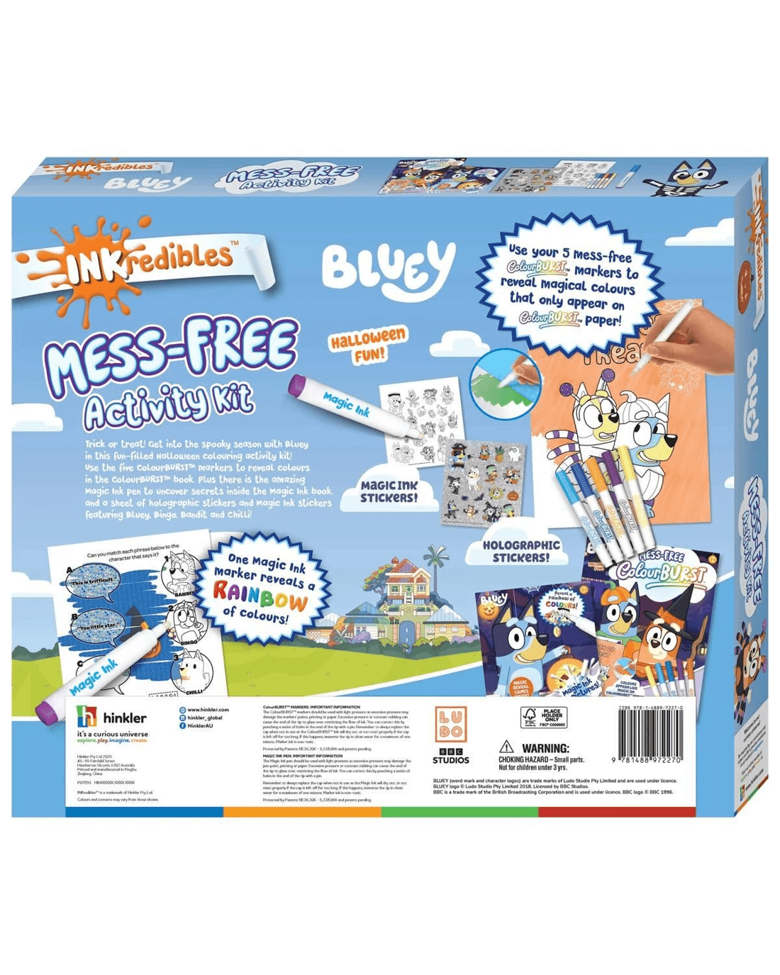 Get ready for a Halloween adventure with INKredibles Activity Kit Bluey Halloween! Packed with spooky fun, this set includes a Magic Ink pad, a ColourBurst book, Magic Ink marker, five ColourBurst markers, plus holographic and Magic Ink sticker sheets! Watch the colours magically appear just like Bluey and Bingo’s awesome adventures! Perfect for little artists who love a bit of trick-or-treat creativity. Plus, the INKredibles mess-free technology ensures all the artistic pursuits stay on the page and off everything else.