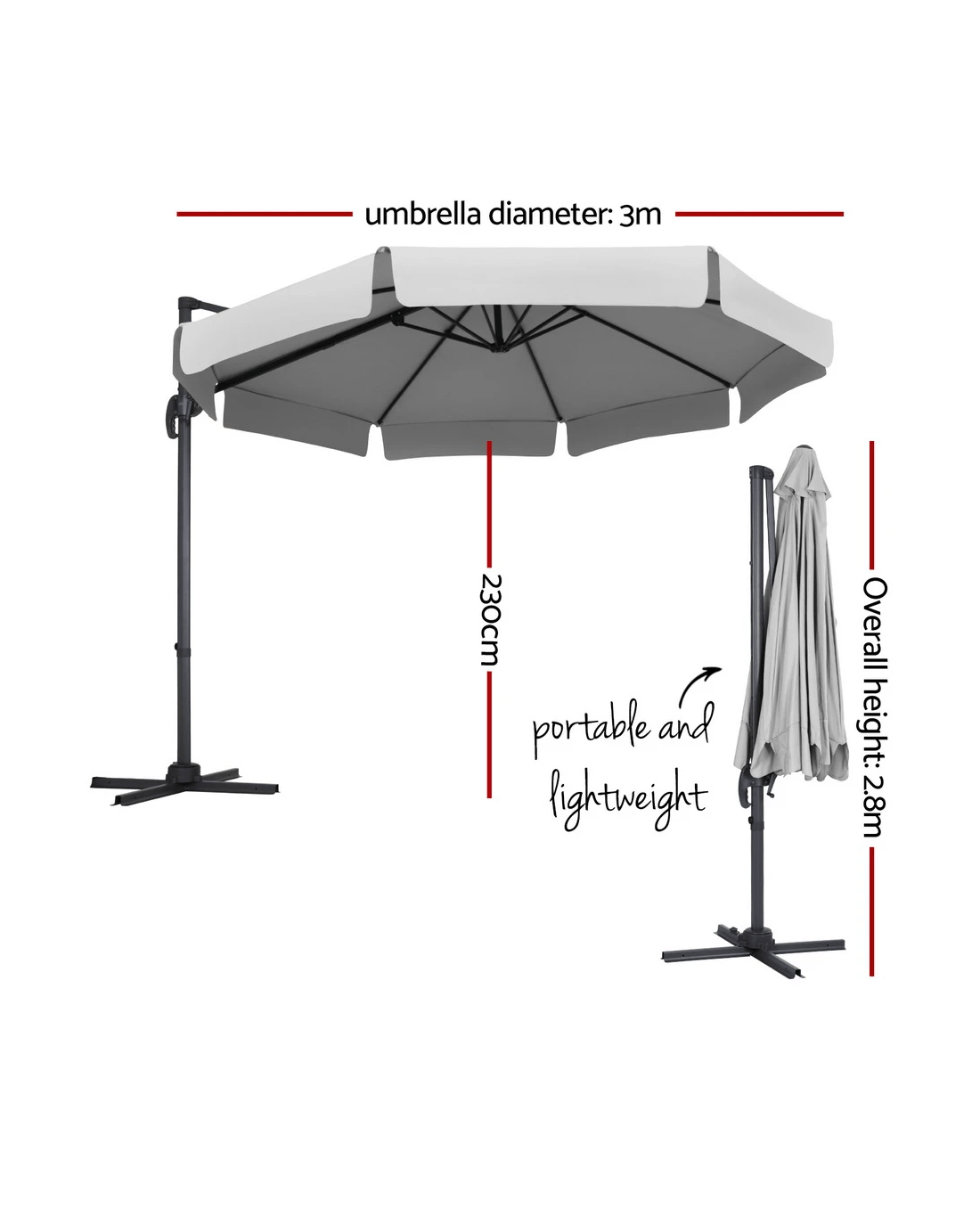 Sold by Aisle SixInstahut 3m Outdoor Umbrella Cantilever 360 Degree Tilt Beach Roma - Grey