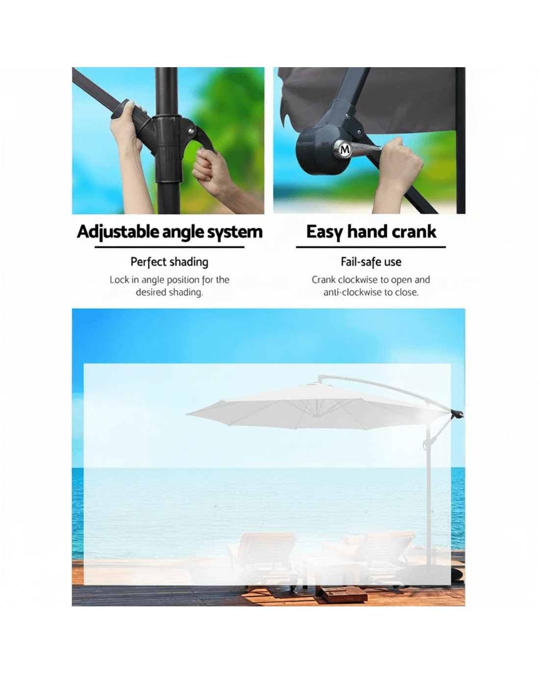 Sold by Aisle SixInstahut 3m Outdoor Umbrella Cantilever Beach Garden Patio - Charcoal
