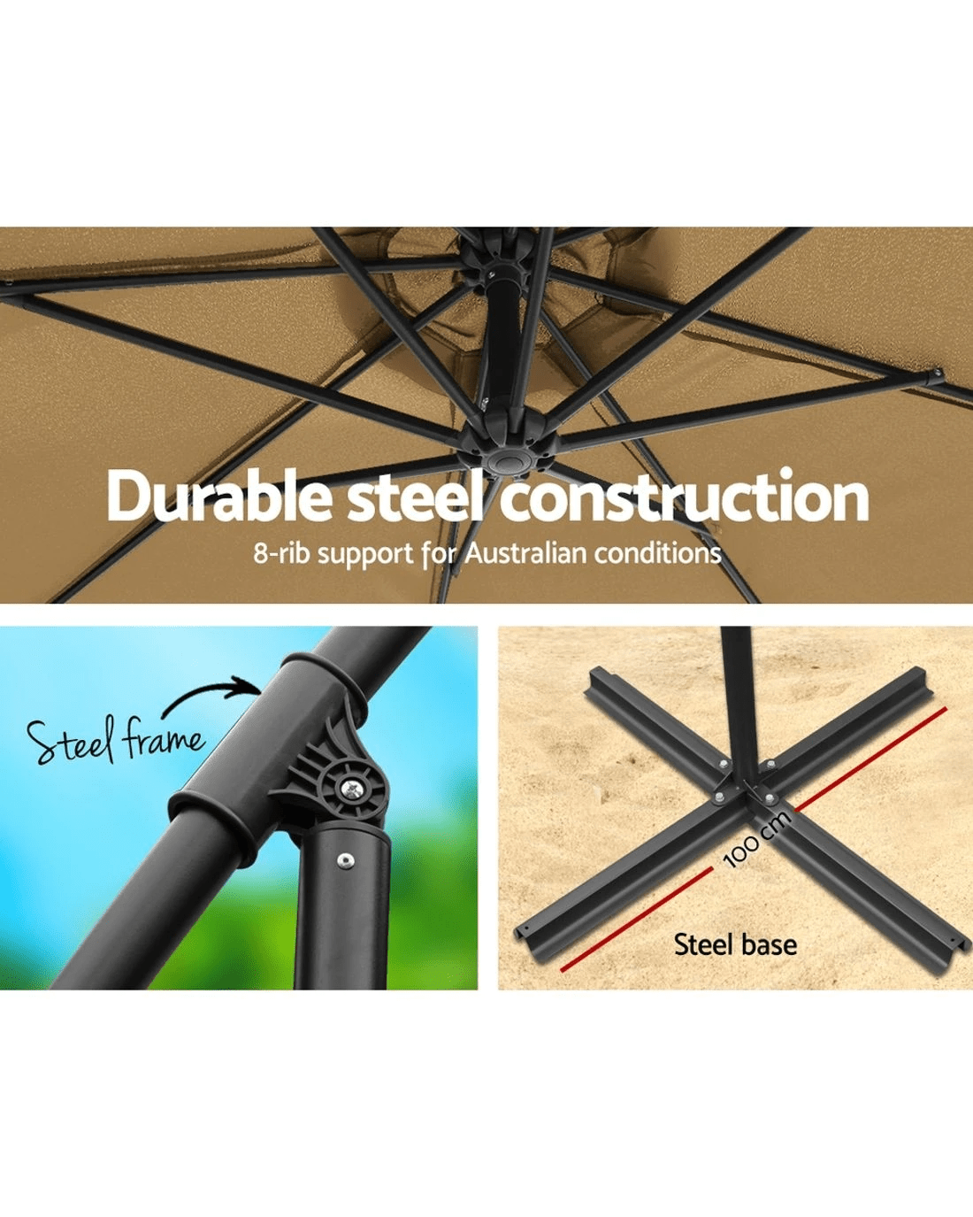 Durable steel construction with 8 steel rib support