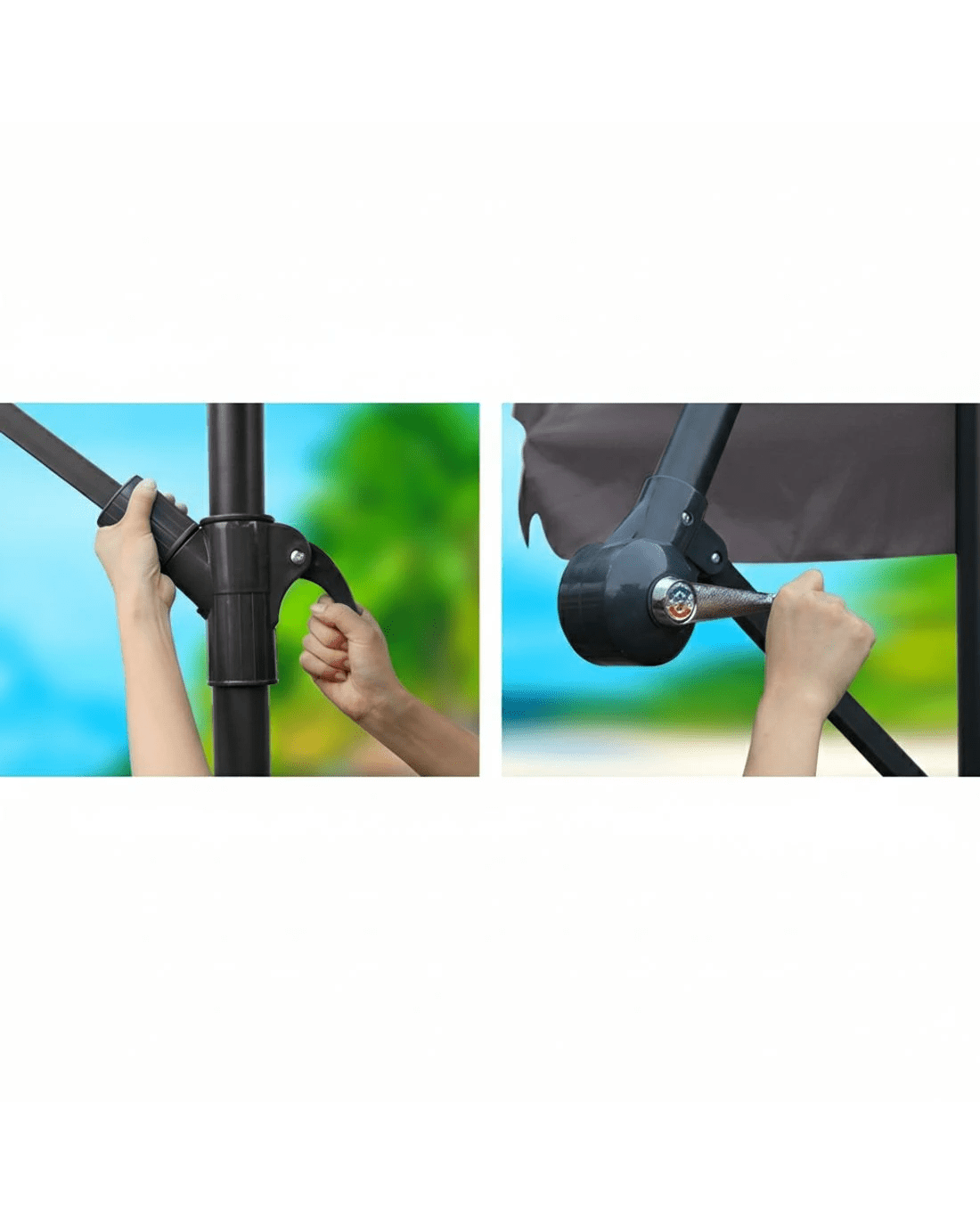 Soak up the sun, while staying cool under our Instahut side post umbrella. Its robust steel frame supports an octagonal UV50+ canopy, ideal for the peak of summer. Made of water-resistant and wear-resistant polyester, it stands up to all sunny adventures. A water-fillable, portable base ensures beach-to-backyard versatility, while the washable canopy ensures freshness. Sunshine and shade, harmoniously blended for your summer escapades.