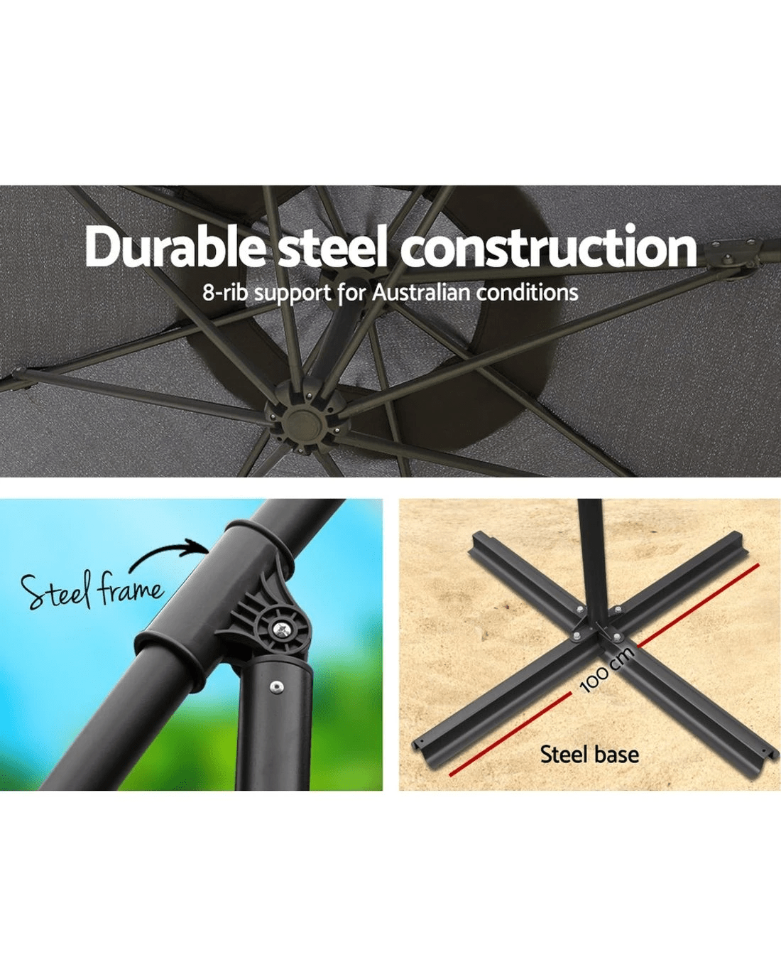 Sold by Aisle SixInstahut 3m Outdoor Umbrella w/Base Cantilever Beach Garden Patio - Black