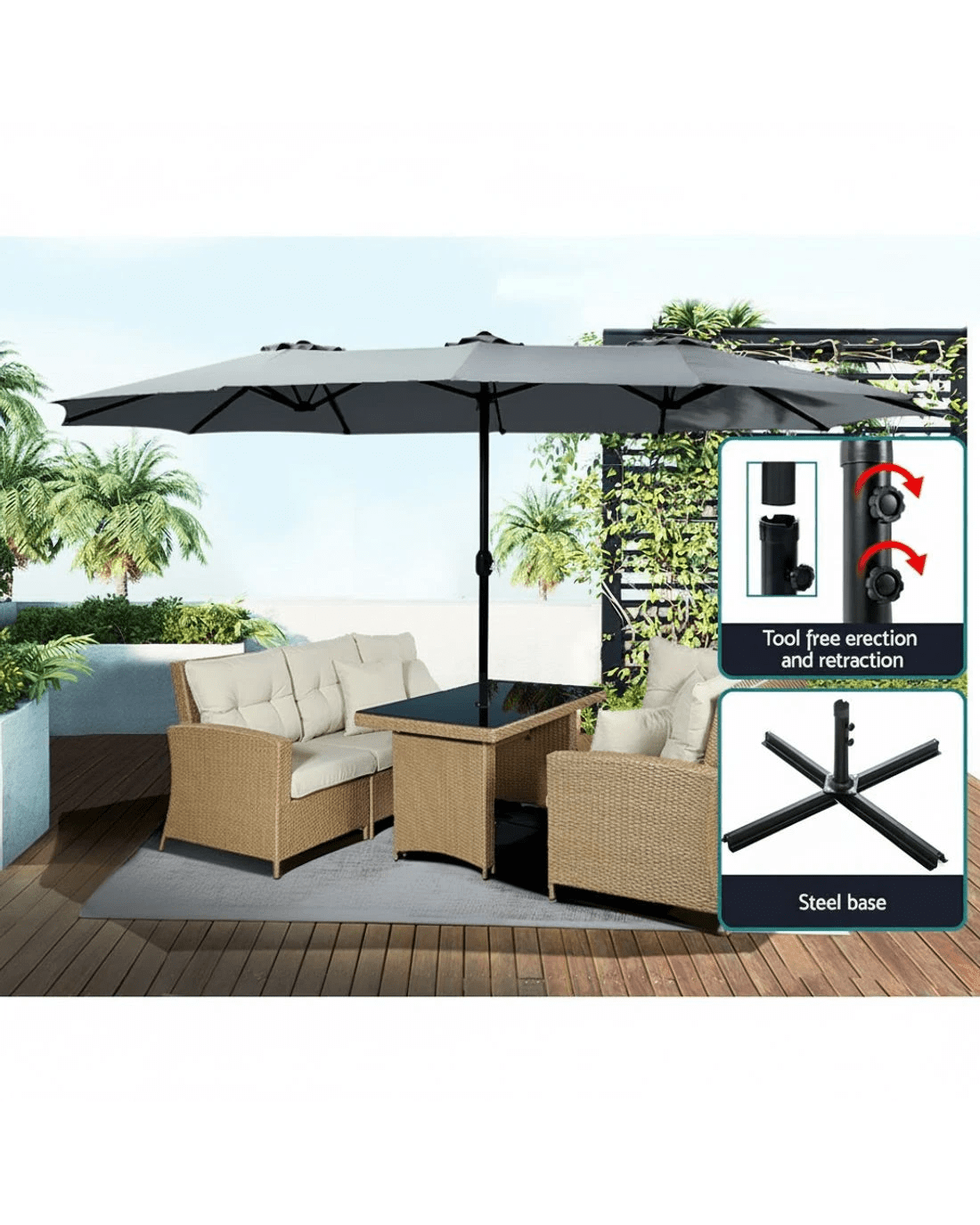 Sold by Aisle SixInstahut 4.57m Outdoor Umbrella Beach Pole Garden Tilt - Charcoal