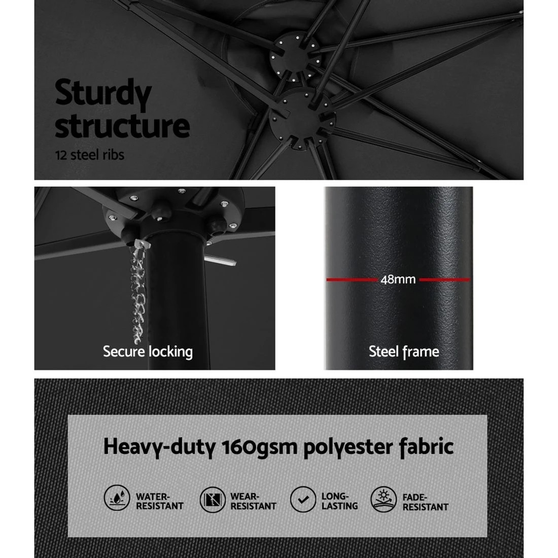 Instahut 4.57m Outdoor Umbrella w/Base Stand Beach Pole Garden Tilt - Black