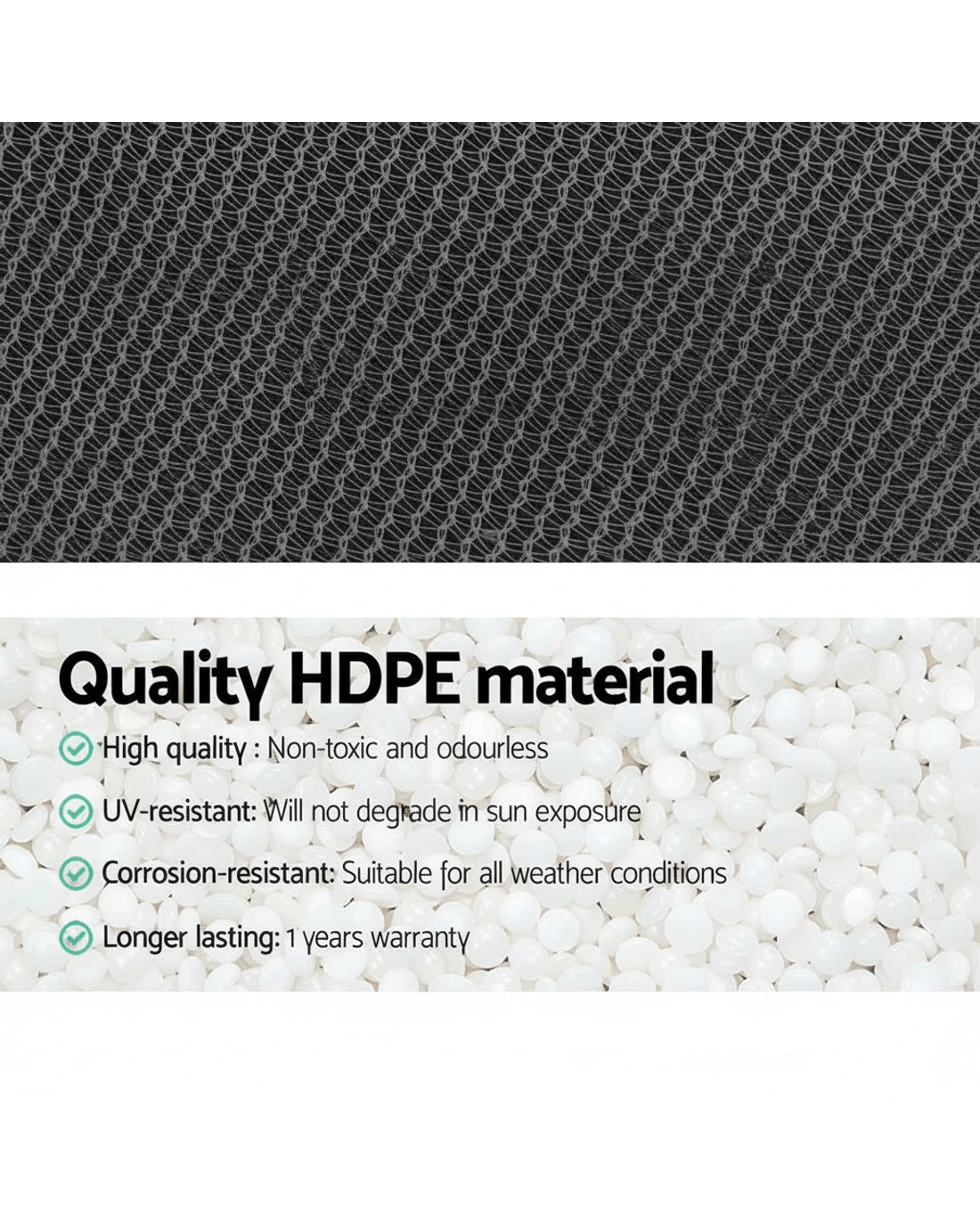 Material: UV-stabilized HPDE, Mono-tape knitted fabric