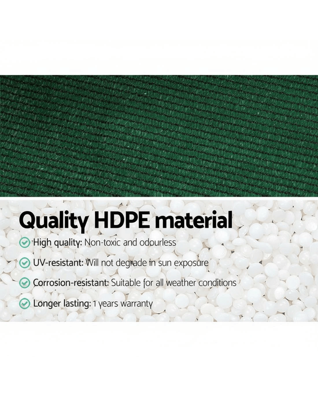 Material: UV-stabilized HPDE, Mono-tape knitted fabric