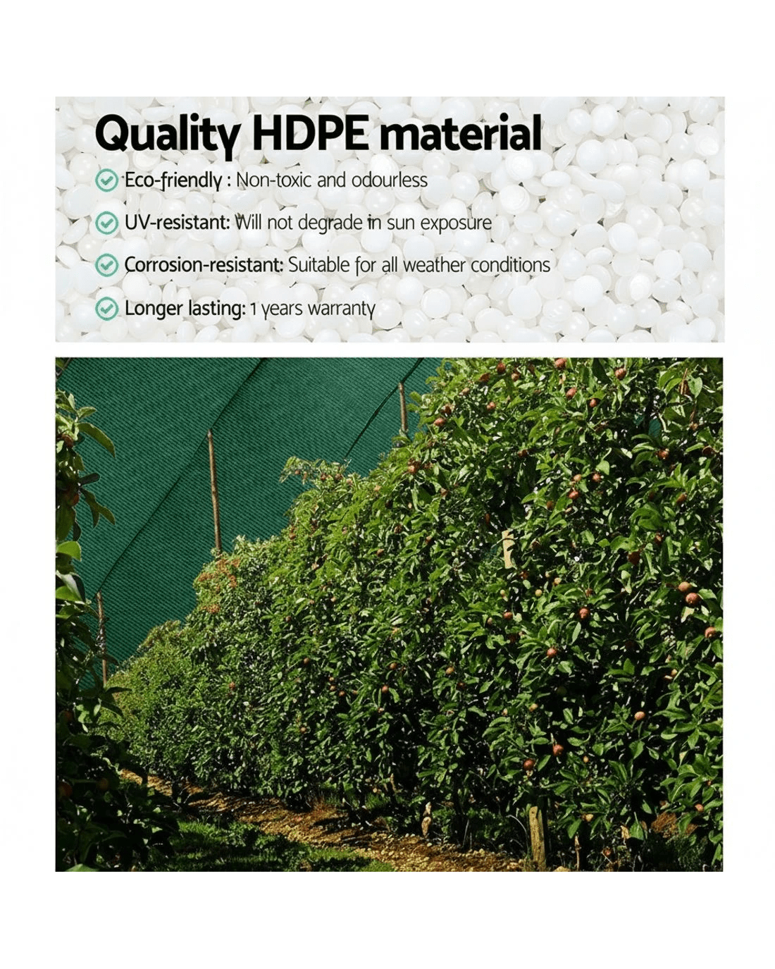 Material: UV-stabilized HPDE, Mono-tape knitted fabric