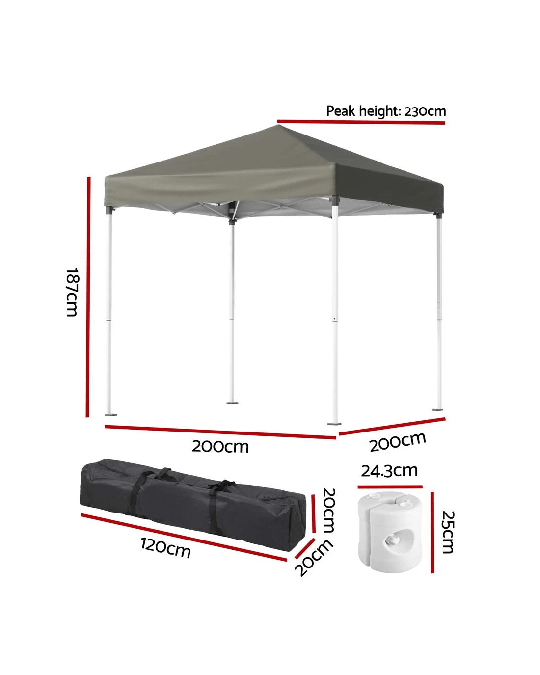 Size: 200cm X 200cm X 230cm (Adjustable height 190cm - 230cm)