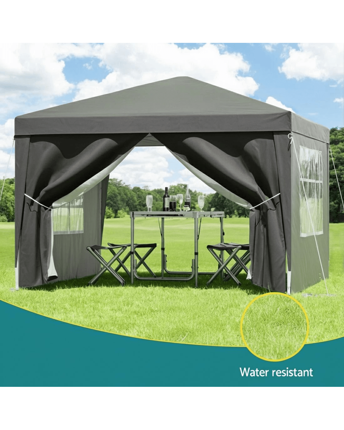 Sold by Aisle SixInstahut Gazebo 3x3 Pop Up Marquee Folding Tent Wedding Gazebos Camping Outdoor Shade Canopy - Grey