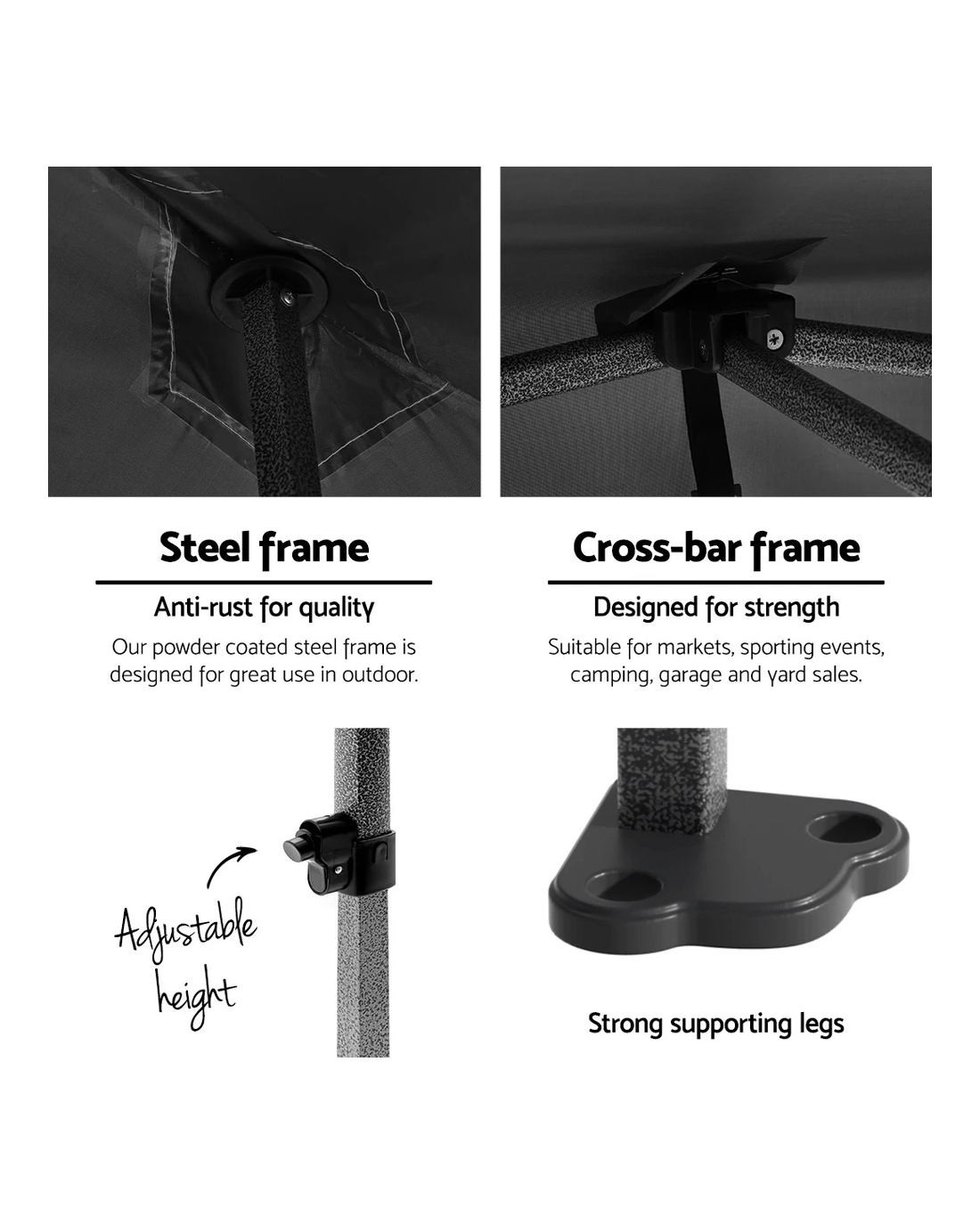 Suitable for markets, sporting events, camping, garage and yard sales, school events and trade shows