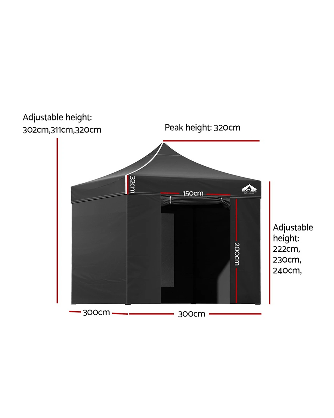Adjustable center height: 302cm, 311cm, 320cm