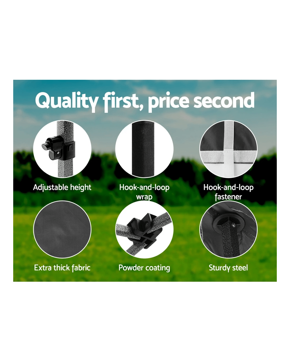 Setting up the Gazebo is a breeze with all the necessary fittings and Velcro attachments already pre-fitted or attached for a hassle-free build. All you need to do is to prop it up, fasten and secured it, and you’re ready to go. Select up to four different heights to suit your requirements. And when all is done, just fold and store it in the bonus Oxford-weave carry bag, get everything into the boot, ready for your next outdoor fete.