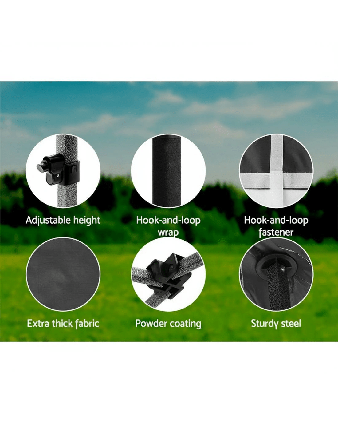 Suitable for markets, sporting events, camping, garage and yard sales, school events and trade shows