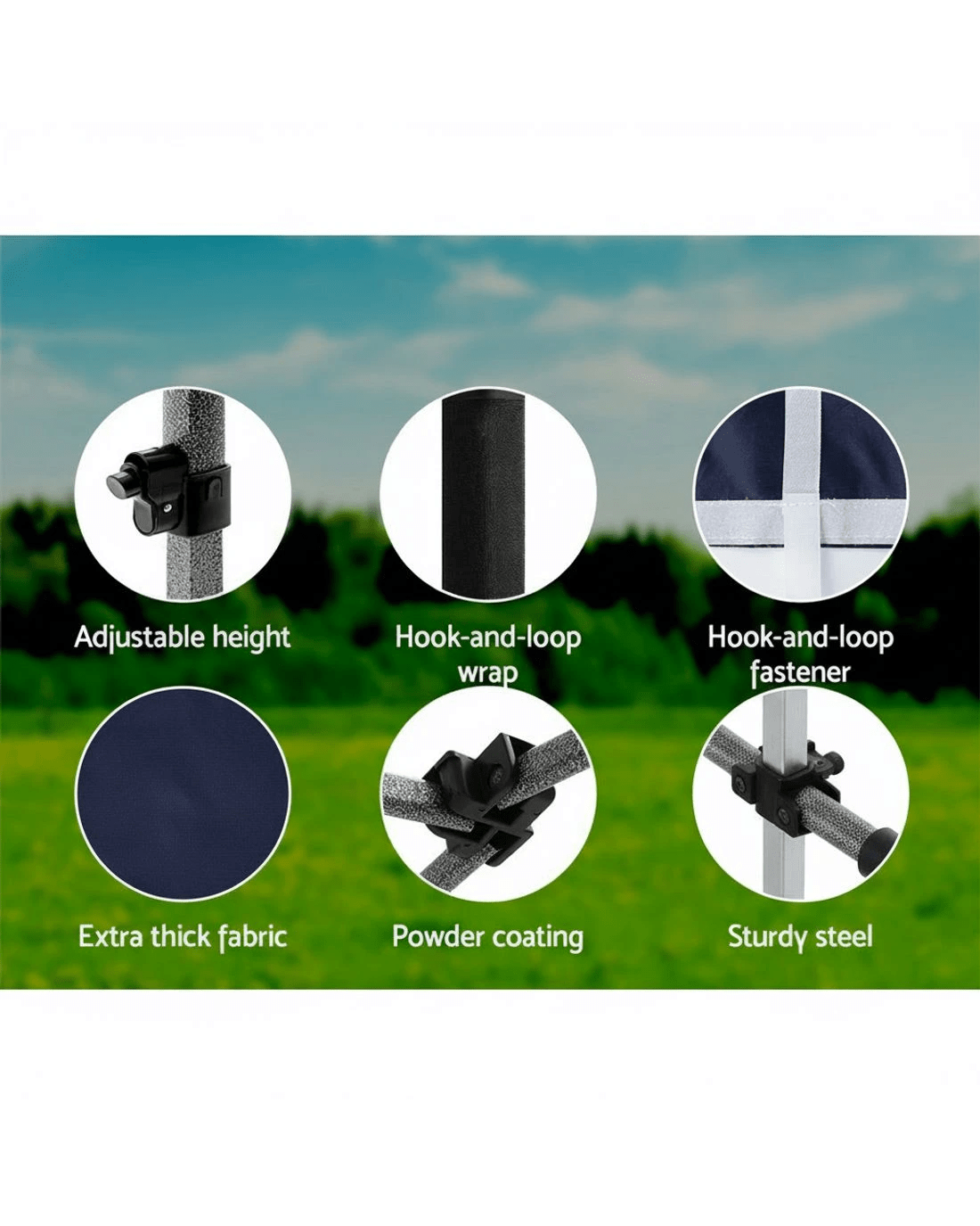 Suitable for markets, sporting events, camping, garage and yard sales, school events and trade shows