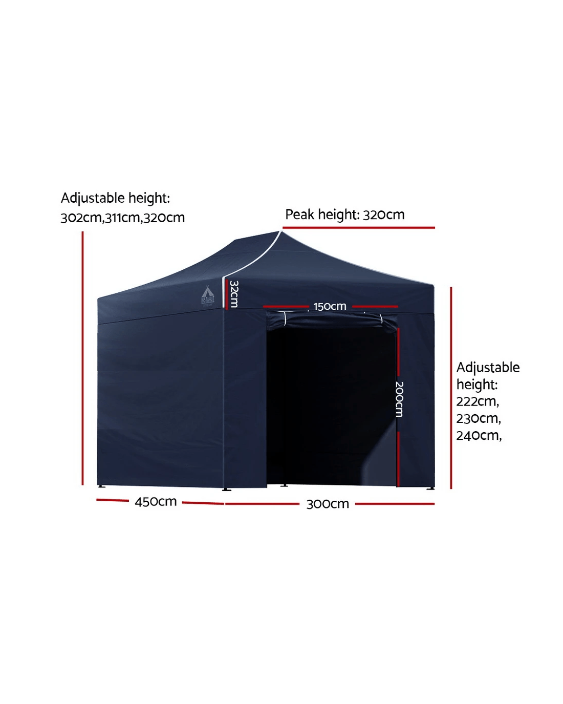 The INSTAHUT gazebo has 3 adjustable height levels to suit different height needs. It is ideal for markets, sporting events, camping, garage and yard sales, school events, trade shows and many more.