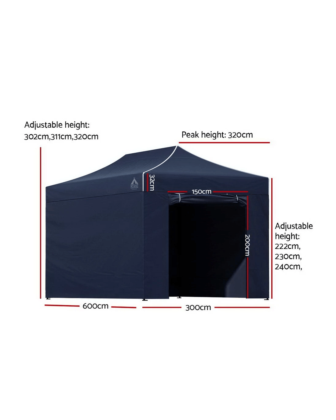 Instahut Gazebo 3x6 Pop Up Marquee Folding Tent Wedding Gazebos Camping Outdoor Shade Canopy - Blue