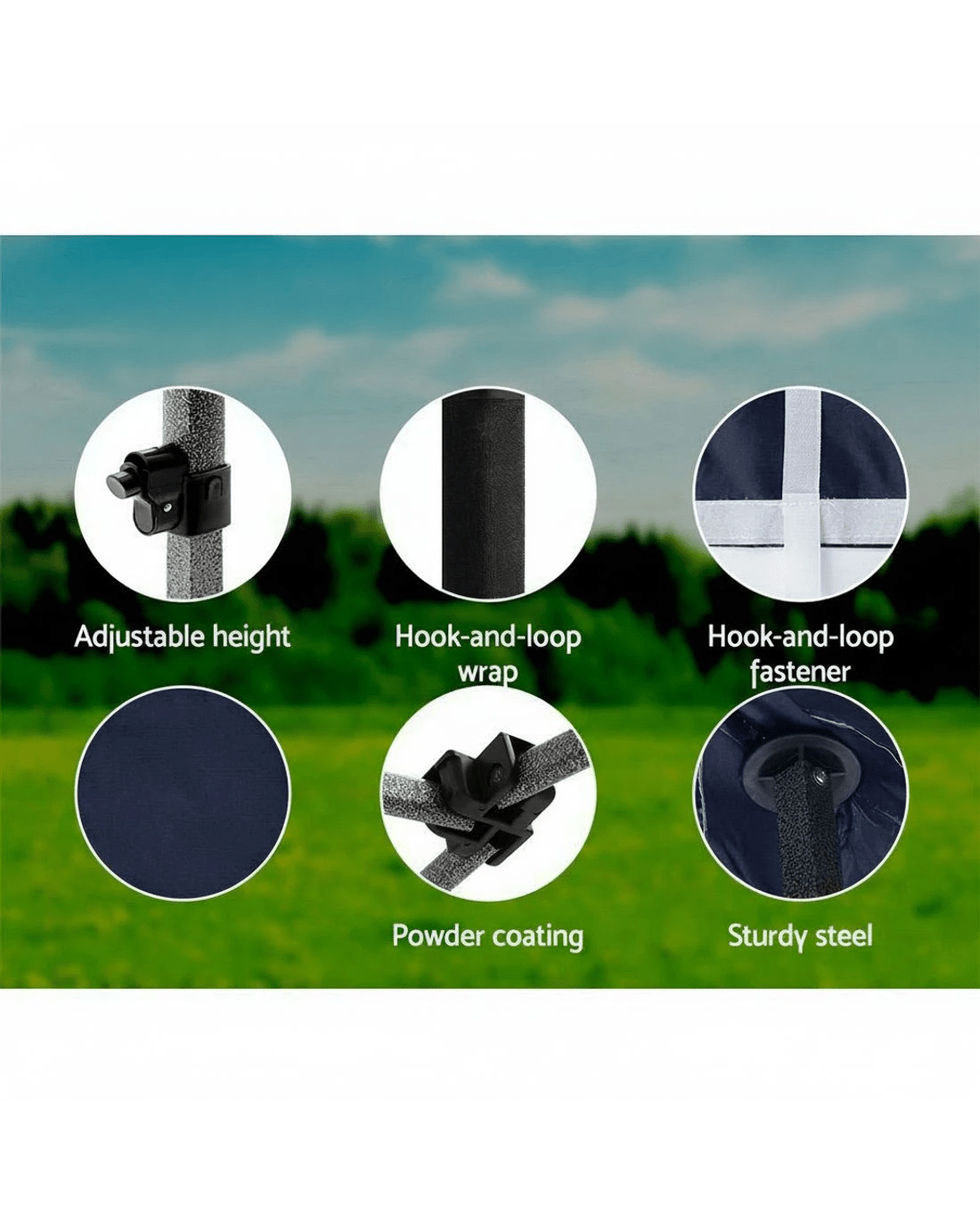 With a wide roof coverage of 300cm by 600cm, the exceptional 6kg cover is made of durable PU coating Oxford fabric that's both UV and water resistant. No more worries about being too hot or too wet, you can get your event going with total peace of mind from the elements. Giving you ample dry cover from rain and adequate protection from UV radiation.