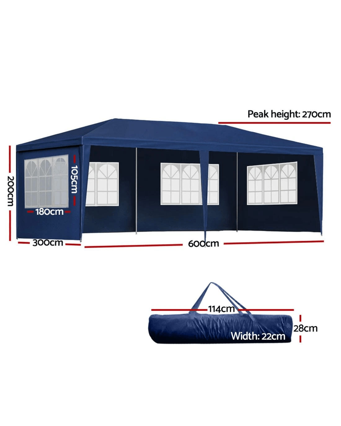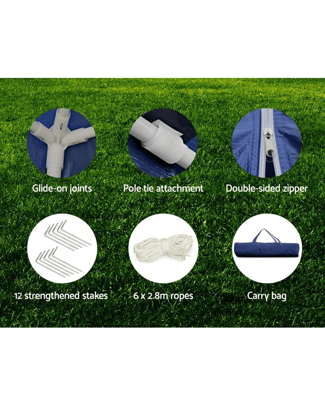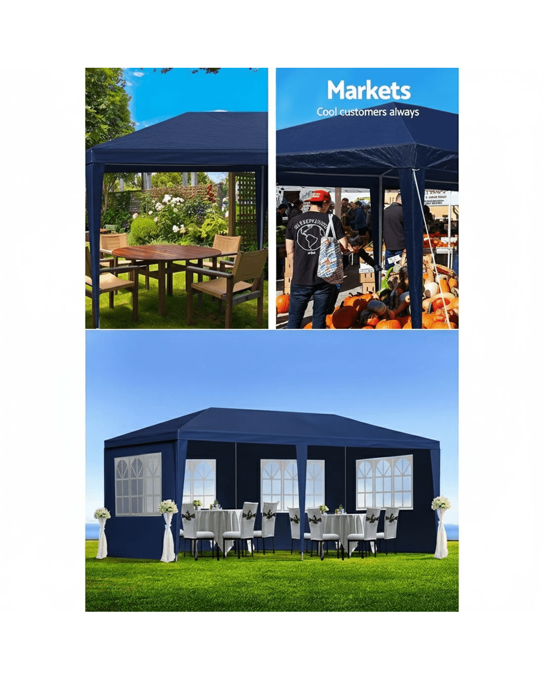 Sold by Aisle SixInstahut Gazebo 3x6m Marquee Wedding Party Tent Outdoor Camping Side Wall Canopy 6 Panel - Blue