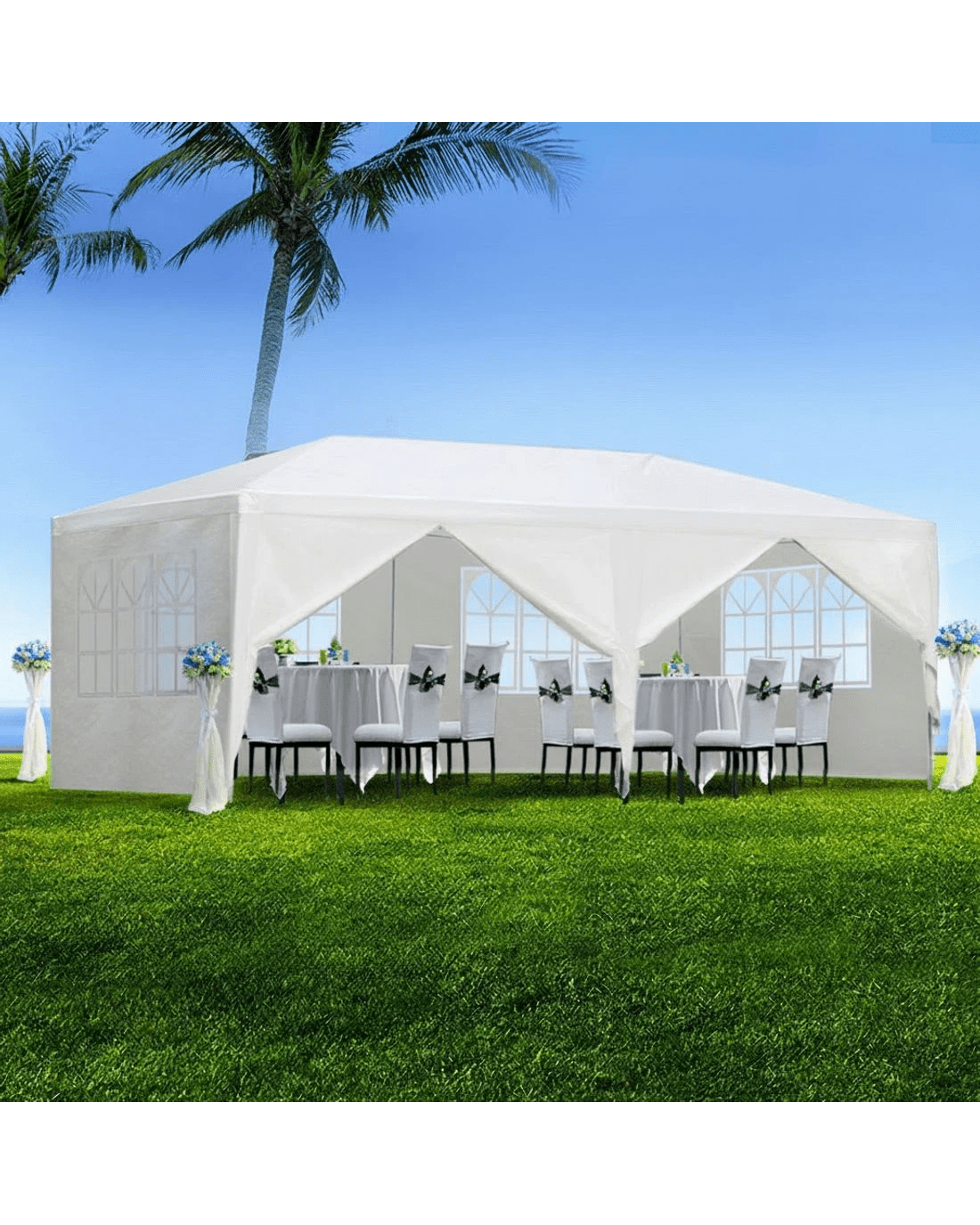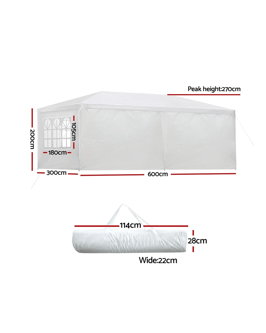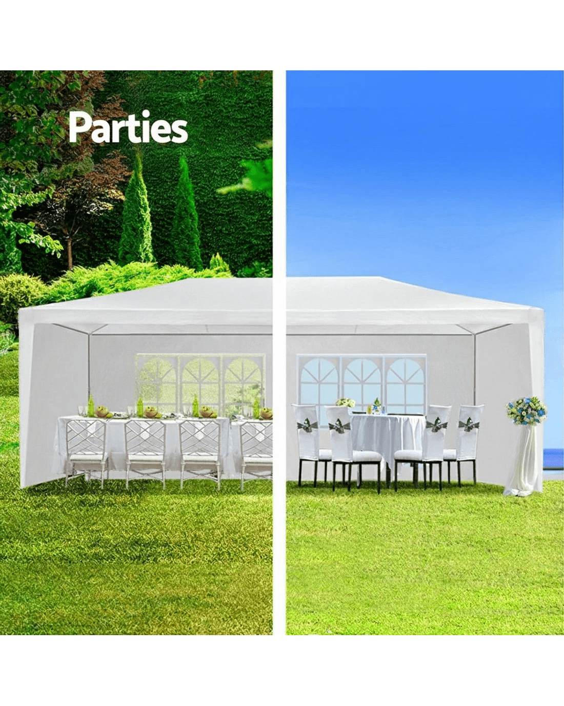 Sold by Aisle SixInstahut Gazebo 3x6m Marquee Wedding Party Tent Outdoor Camping Side Wall Canopy 6 Panel - White