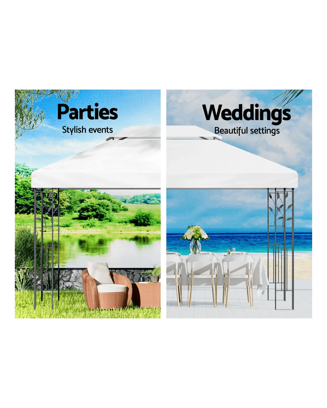 Instahut Gazebo 4x3m Marquee Outdoor Wedding Party Event Tent Home Iron Art - White