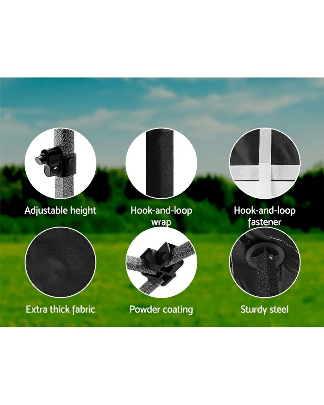 Featuring high density, long lasting PU coating oxford fabric with effective UV and water repellent treatments, this INSTAHUT 3X3 Pop Up Gazebo provides a lovely ground and canopy coverage of 300 x 300cm. It is perfect for all your upcoming outdoor activities, as a sunshade station as well as a shelter for unexpected rains.