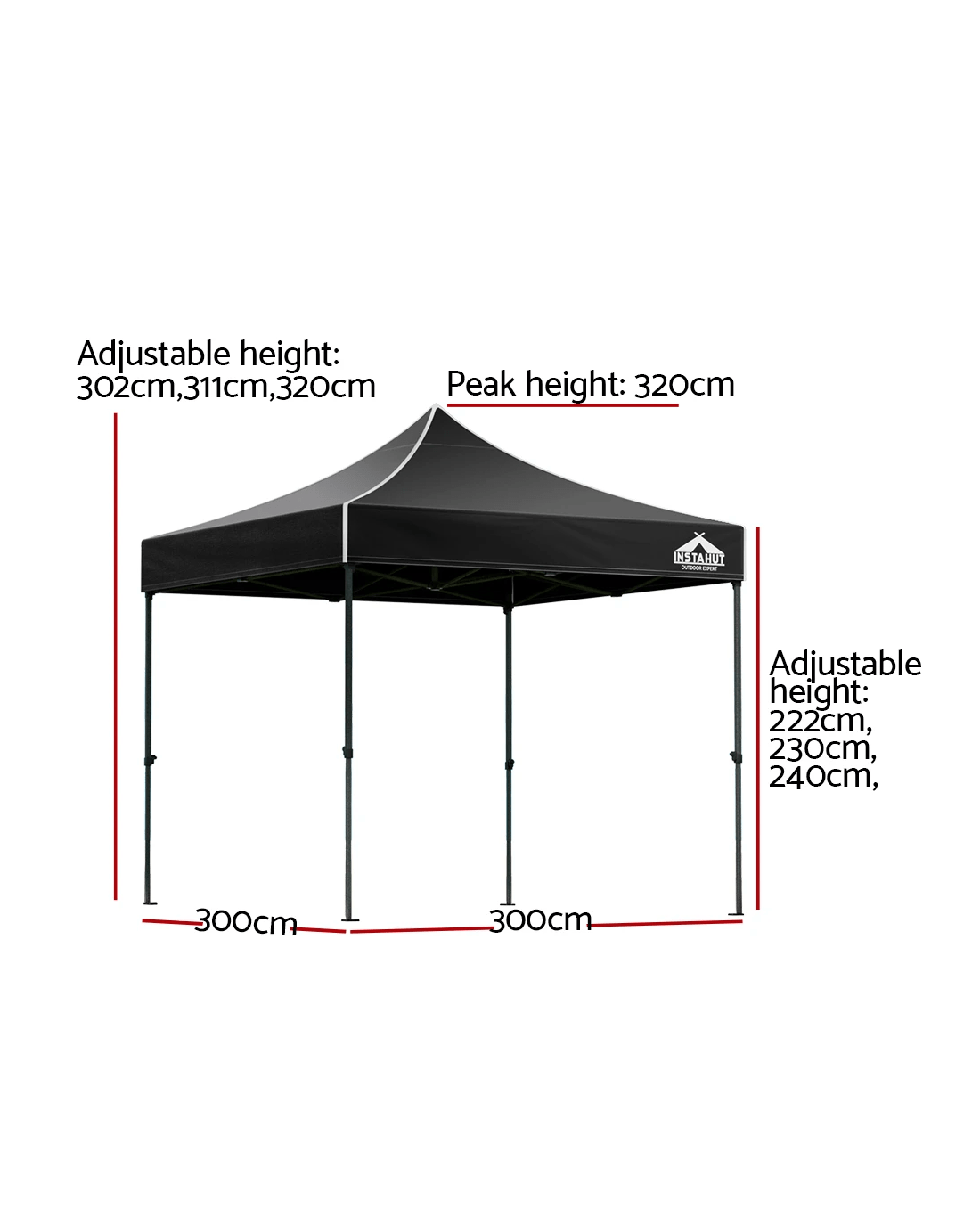 Instahut Gazebo Pop Up 3x3m w/Base Podx4 Marquee Folding Outdoor Wedding Camping Tent Shade Canopy - Black