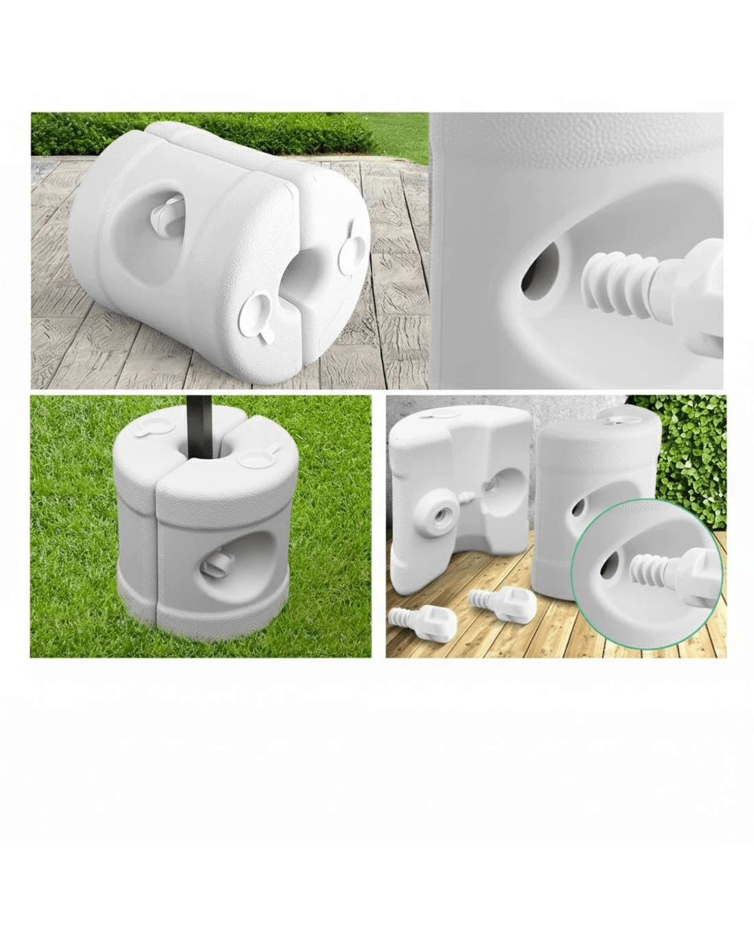 Featuring a convenient pack of 4 gazebo base pods, simply attach these pods to the bottom of your gazebo legs; they will increase the stability of the gazebo. These gazebo base pods are ideal when pegs cannot be used on the hard surfaces. Extremely easy to set up with no tools required; each pod comprises of 2 halves secured together by an oversize moulded thumb screw. The pods can be filled with either water or sand.