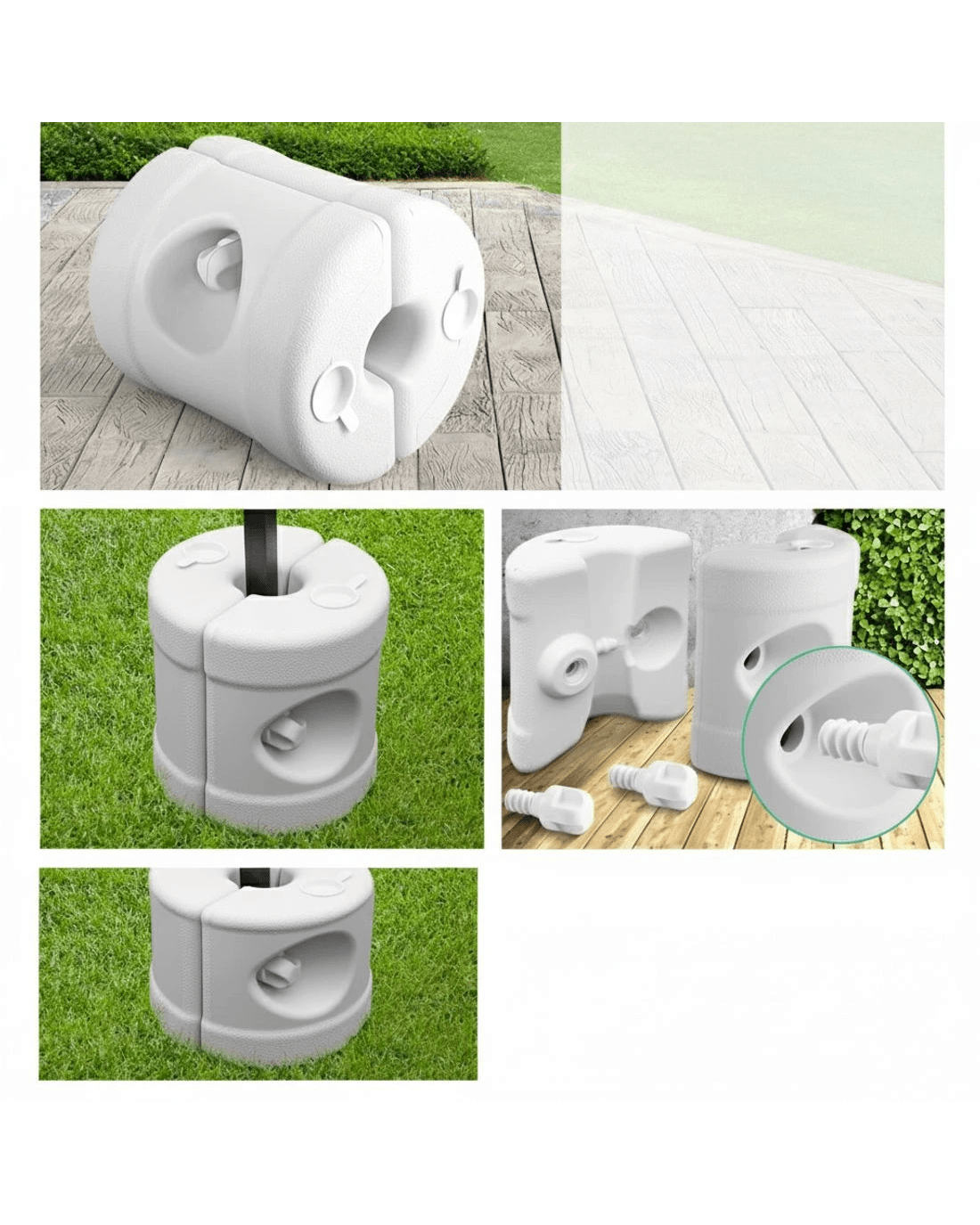 Featuring a convenient pack of 4 gazebo base pods, simply attach these pods to the bottom of your gazebo legs; they will increase the stability of the gazebo. These gazebo base pods are ideal when pegs cannot be used on the hard surfaces. Extremely easy to set up with no tools required; each pod comprises of 2 halves secured together by an oversize moulded thumb screw. The pods can be filled with either water or sand.