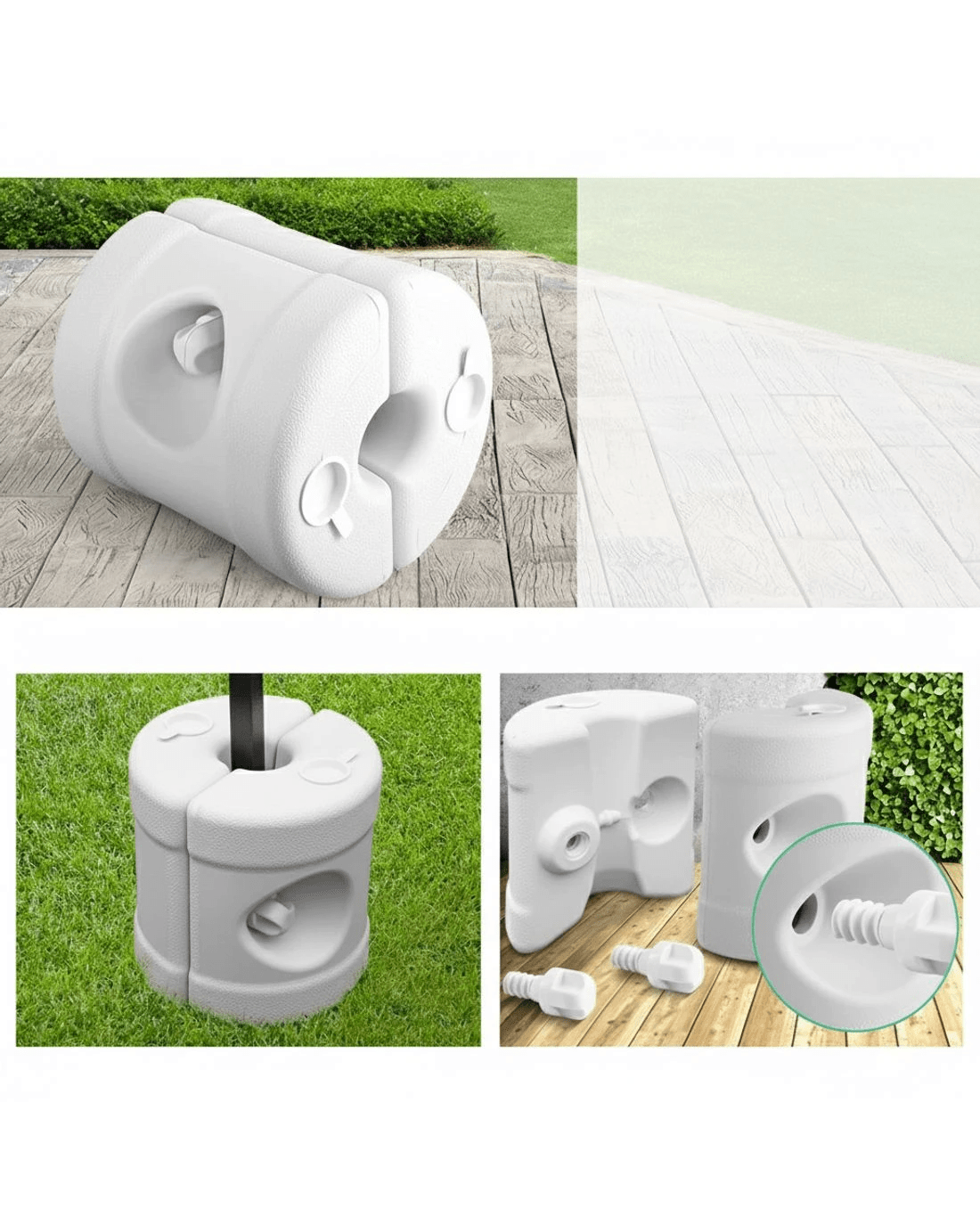 Featuring a convenient pack of 4 gazebo base pods, simply attach these pods to the bottom of your gazebo legs; they will increase the stability of the gazebo. These gazebo base pods are ideal when pegs cannot be used on the hard surfaces. Extremely easy to set up with no tools required; each pod comprises of 2 halves secured together by an oversize moulded thumb screw. The pods can be filled with either water or sand.
