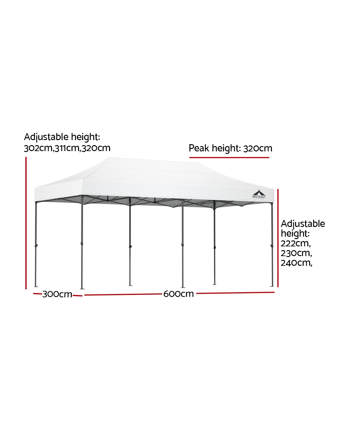 Adjustable center height: 222cm, 230cm, 240cm