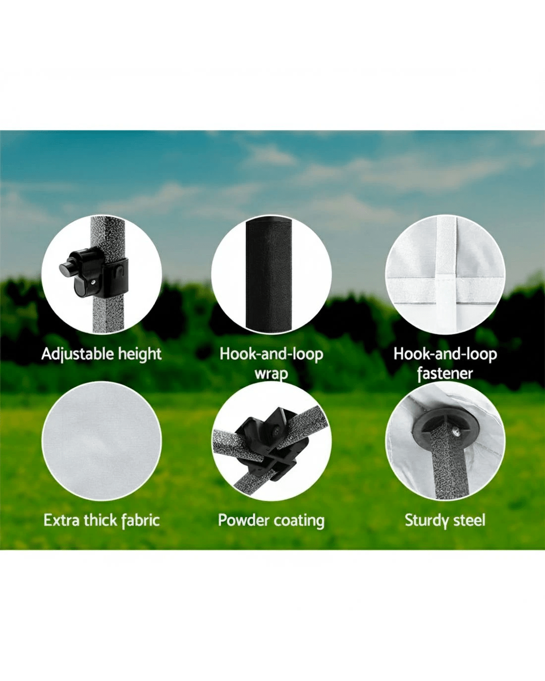Featuring high density, long lasting PU coating oxford fabric with effective UV and water repellent treatments, this INSTAHUT 3X3 Pop Up Gazebo provides a lovely ground and canopy coverage of 300 x 300cm. It is perfect for all your upcoming outdoor activities, as a sunshade station as well as a shelter for unexpected rains.