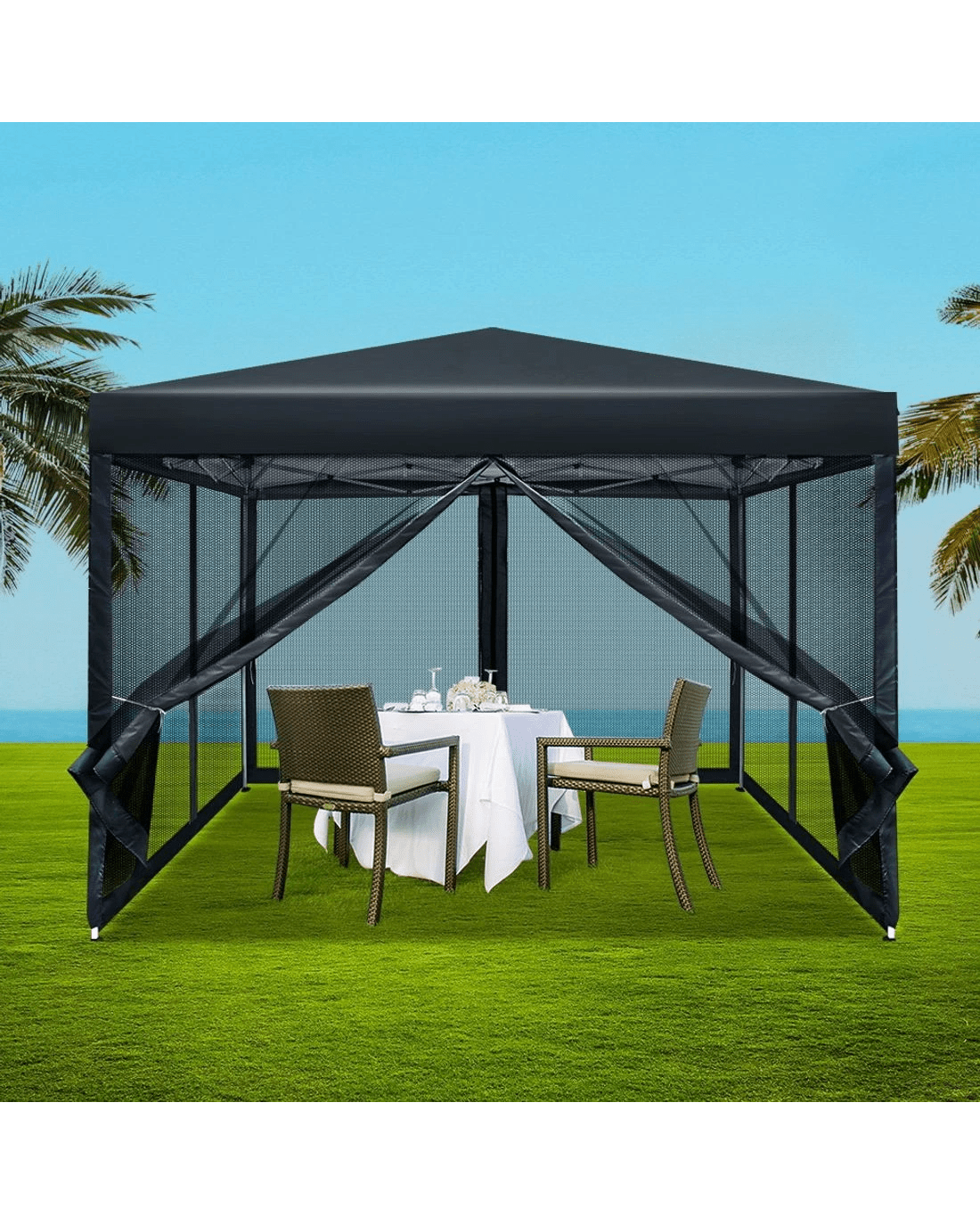 Instahut Gazebo Pop Up Marquee 3x3m Wedding Party Outdoor Camping Tent Canopy Shade Mesh Wall - Black