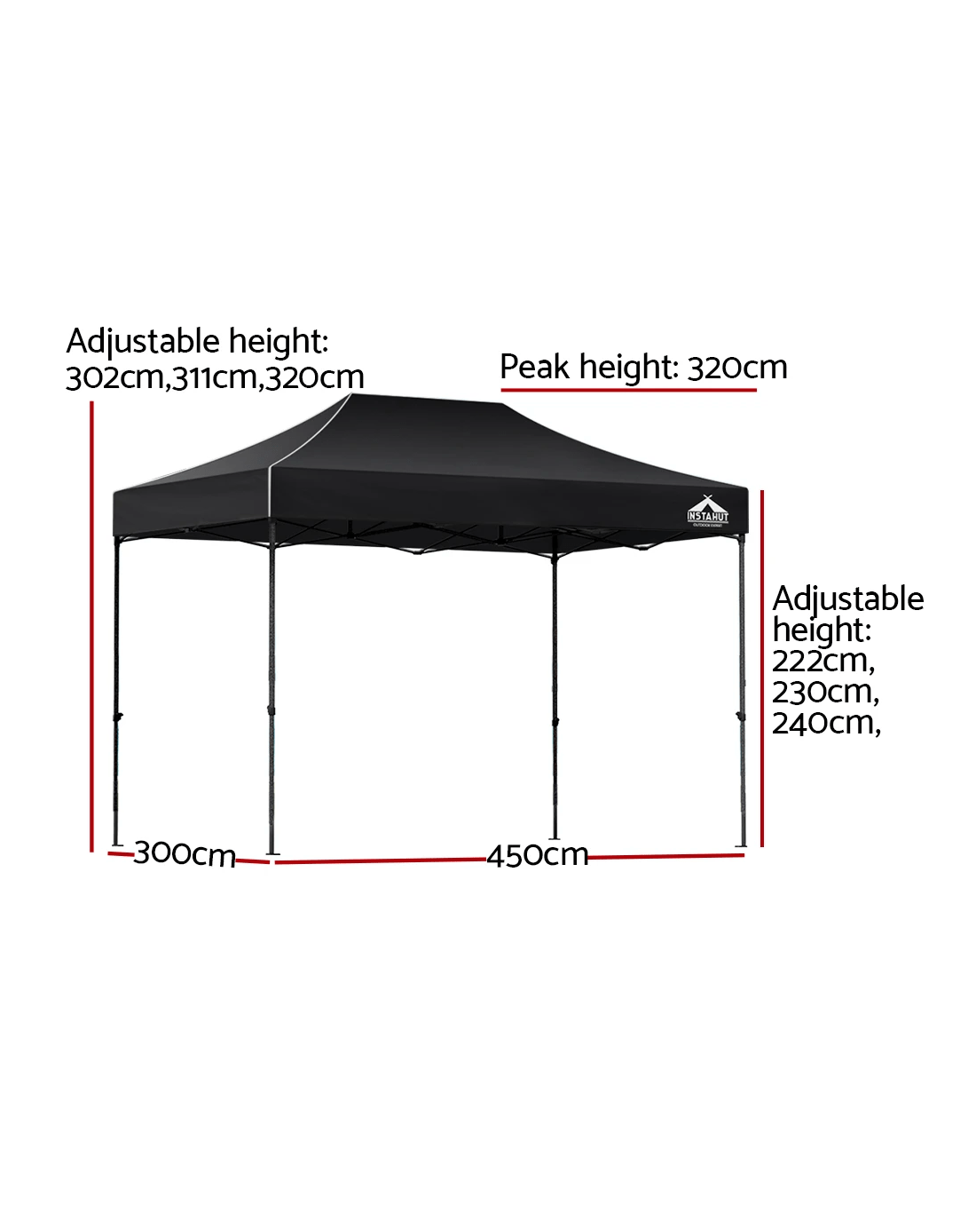 Instahut Gazebo Pop Up Marquee 3x4.5m Folding Tent Wedding Outdoor Camping Canopy Gazebos Shade - Black