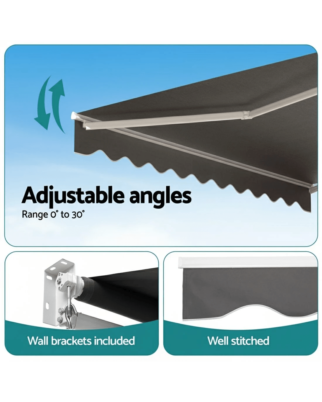 Sold by Aisle SixInstahut Retractable Folding Arm Awning Manual Sunshade 3.5M X 2.5M - Grey