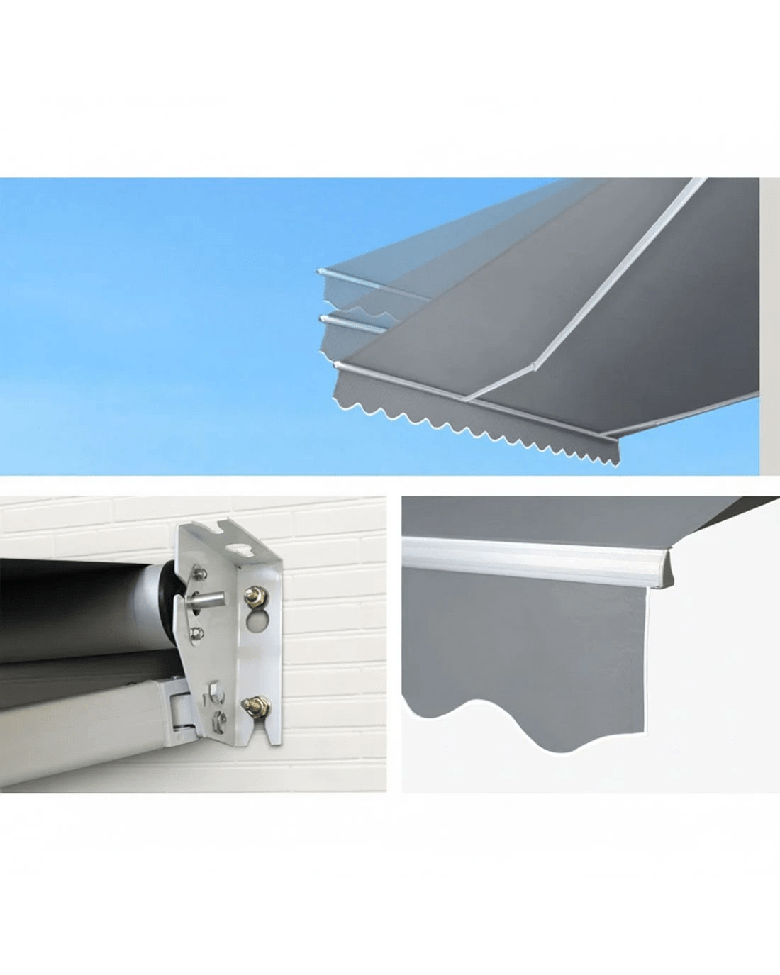 Note: The fixings supplied are for brick walls and concrete walls only. For other structural fixing, please contact your local qualified buiilder or hardware store for recommended fixings. For safety reason, we strongly recommend using a qualified builder to install your awning.